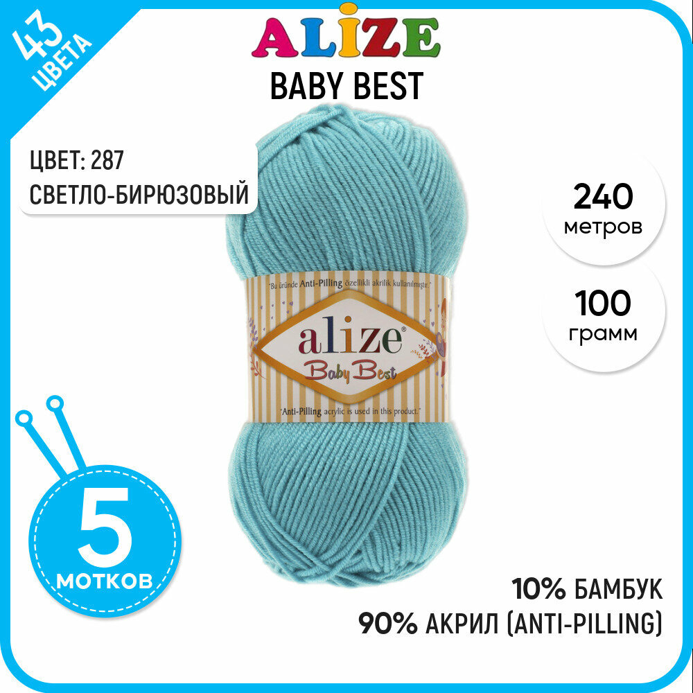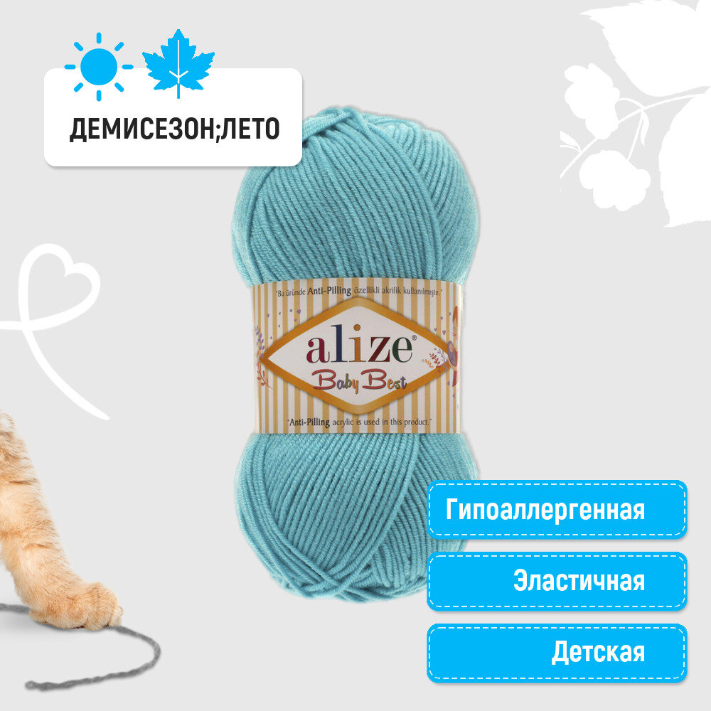Пряжа для вязания Alize 'Baby Best', 100г, 240м (10% бамбук, 90% акрил), с эффектом антипиллинг (287 бирюзовый), 5 мотков