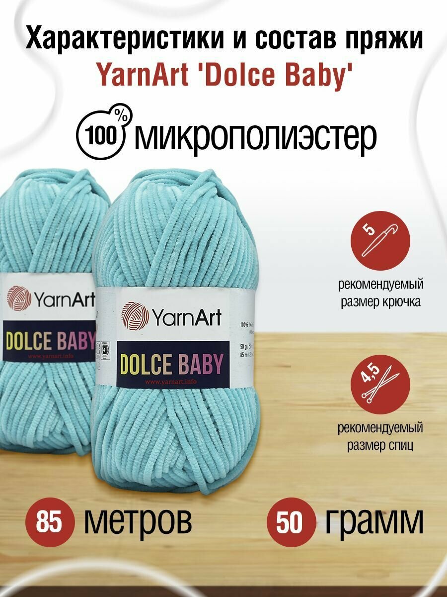 СохранитьПряжа для вязания плюшевая YarnArt Dolce Baby, цвет 746 бирюзовый, моток 50г, 85м, 5 мотков интересное: