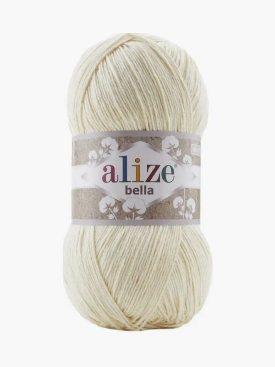 Пряжа Alize Bella 100 молочный (62), 100%хлопок, 360м, 100г, 1шт