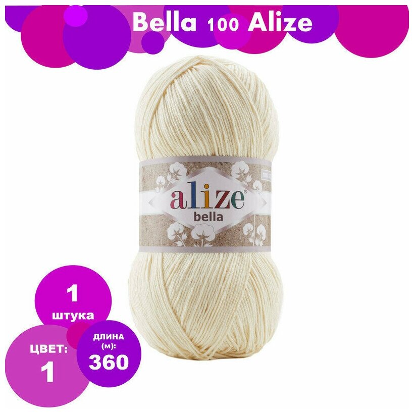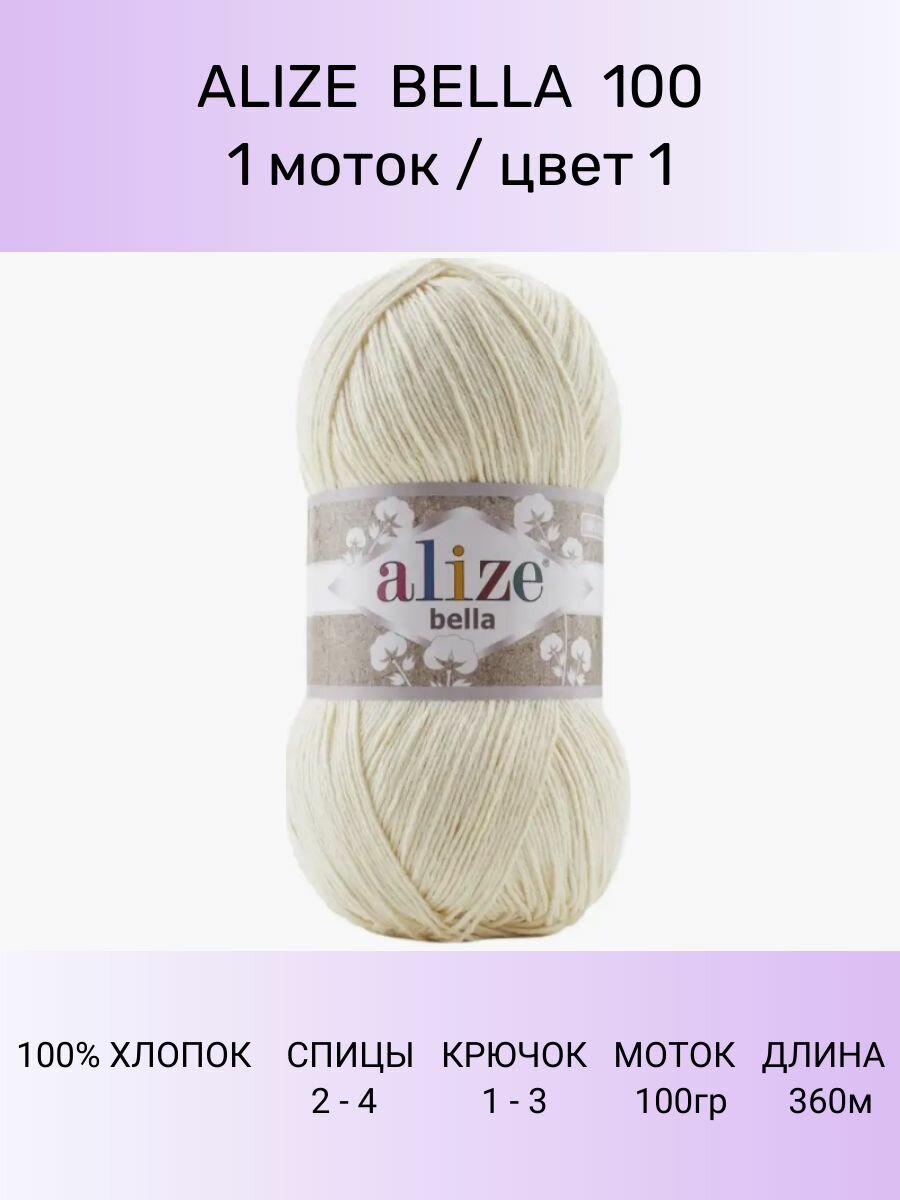 Пряжа Alize Bella 100 молочный (01), 100%хлопок, 360м, 100г, 1шт