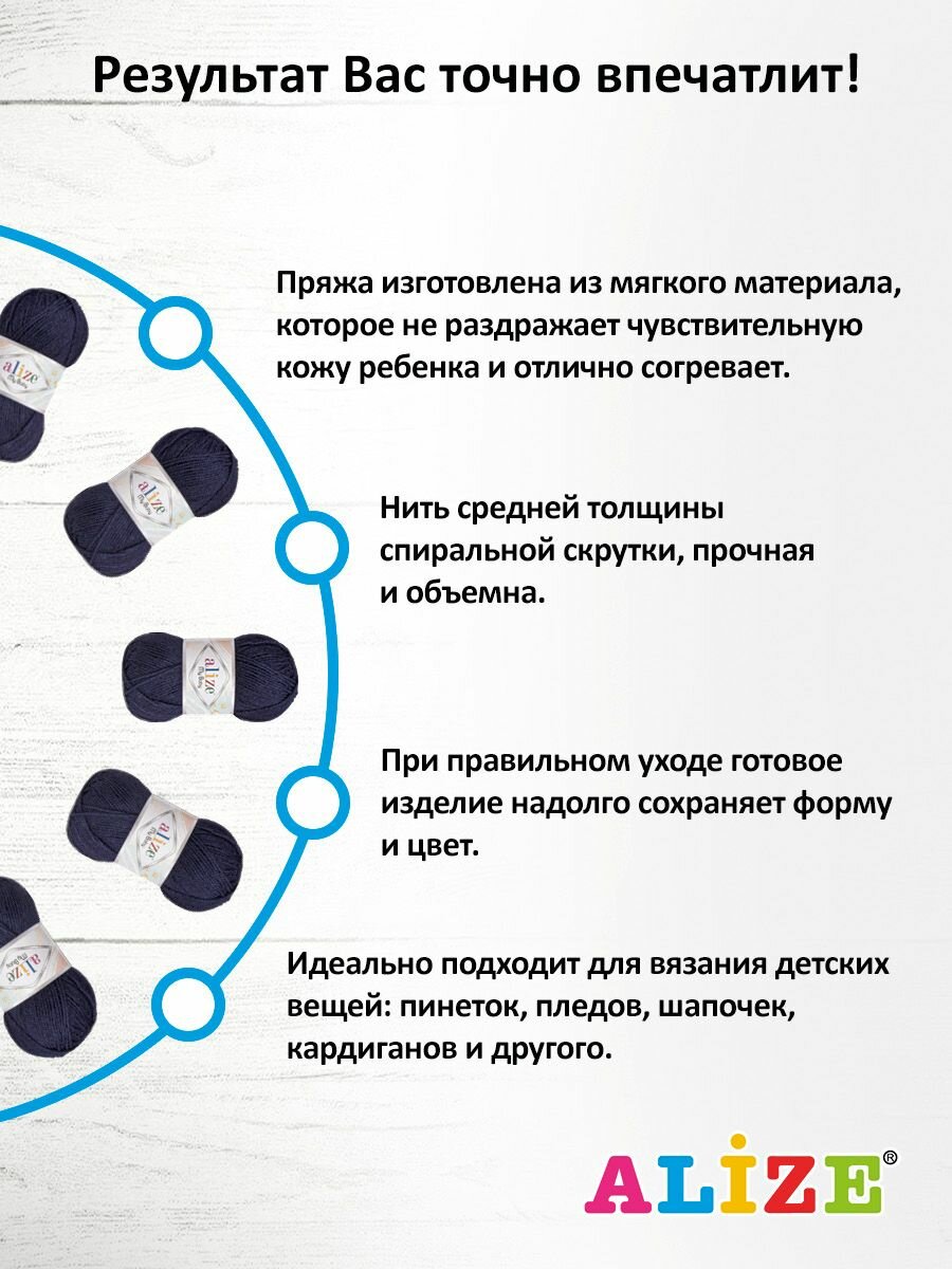 Купить Пряжа для вязания ALIZE 'My baby', 50г, 150м (100% акрил) (58 тёмно-синий), 5 мотков