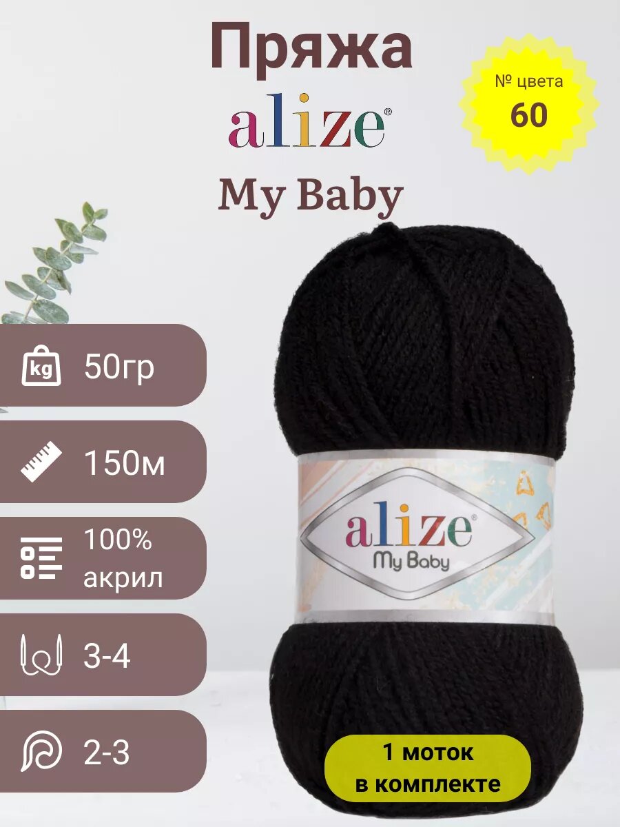 Пряжа Alize "My baby" 50г 150м (100% акрил), цвет: 60 черный, 1 шт.