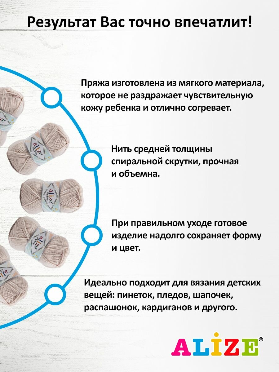 СохранитьПряжа MY BABY (Alize), слоновая кость - 599, 100% акрил, 5 мотков, 50 г., 150 м. интересное: