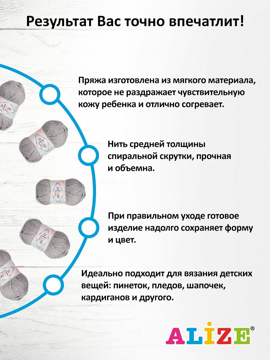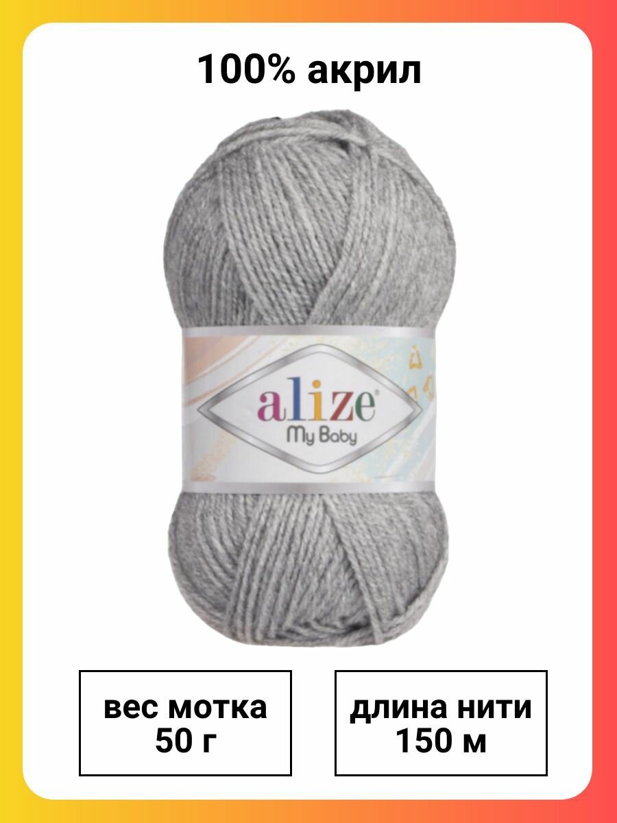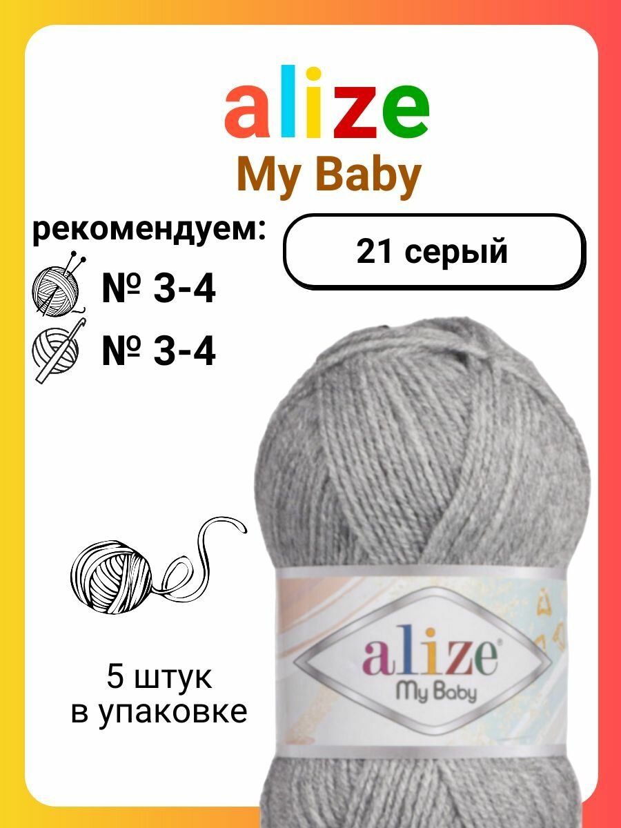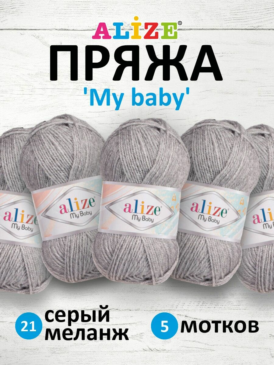 Купить Пряжа Alize My baby серый меланж (21), 100%акрил, 150м, 50г, 5шт