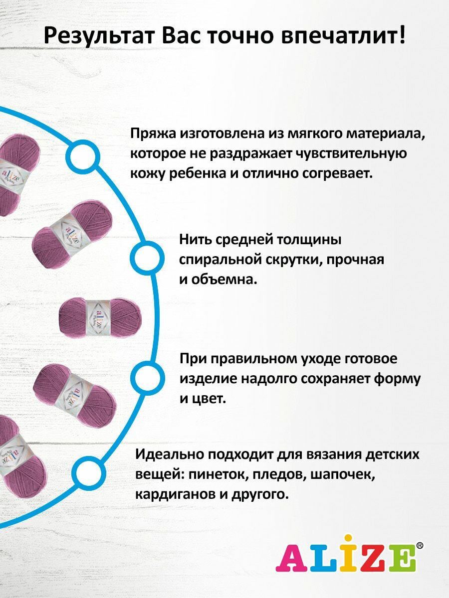 Пряжа MY BABY (Alize), сиреневый - 247, 100% акрил, 5 мотков, 50 г, 150 м.