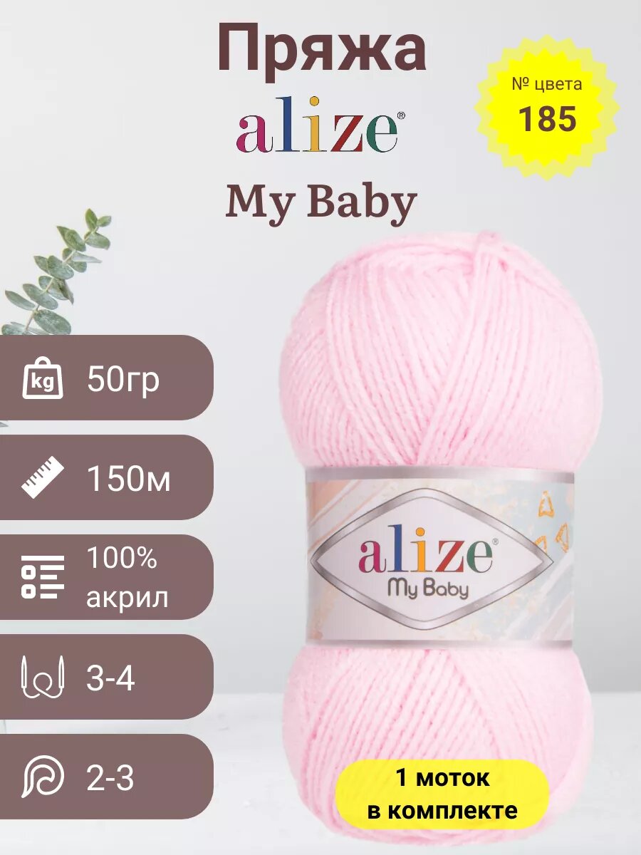 Купить Пряжа Alize My baby детский розовый (185), 100%акрил, 150м, 50г, 1шт