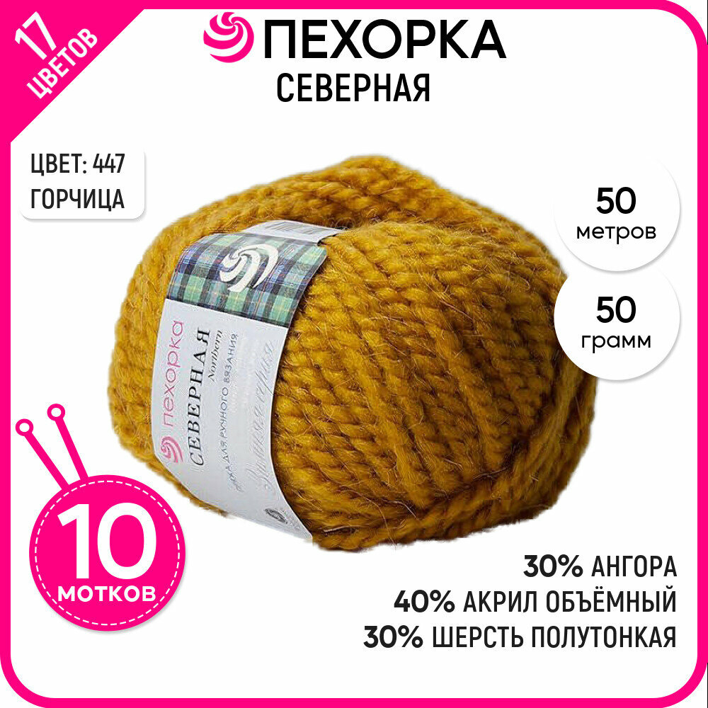 Пряжа для вязания Пехорка 'Северная', 50г, 50м (30% ангора, 30% шерсть, 40% акрил высокообъёмный) (447 горчица), 10 мотков