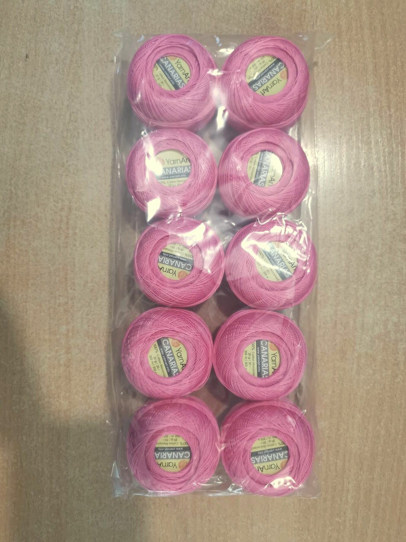Пряжа Canarias, цвет 5001 розовый, 100% хлопок мерсеризованный, 20г, 203м, 1шт