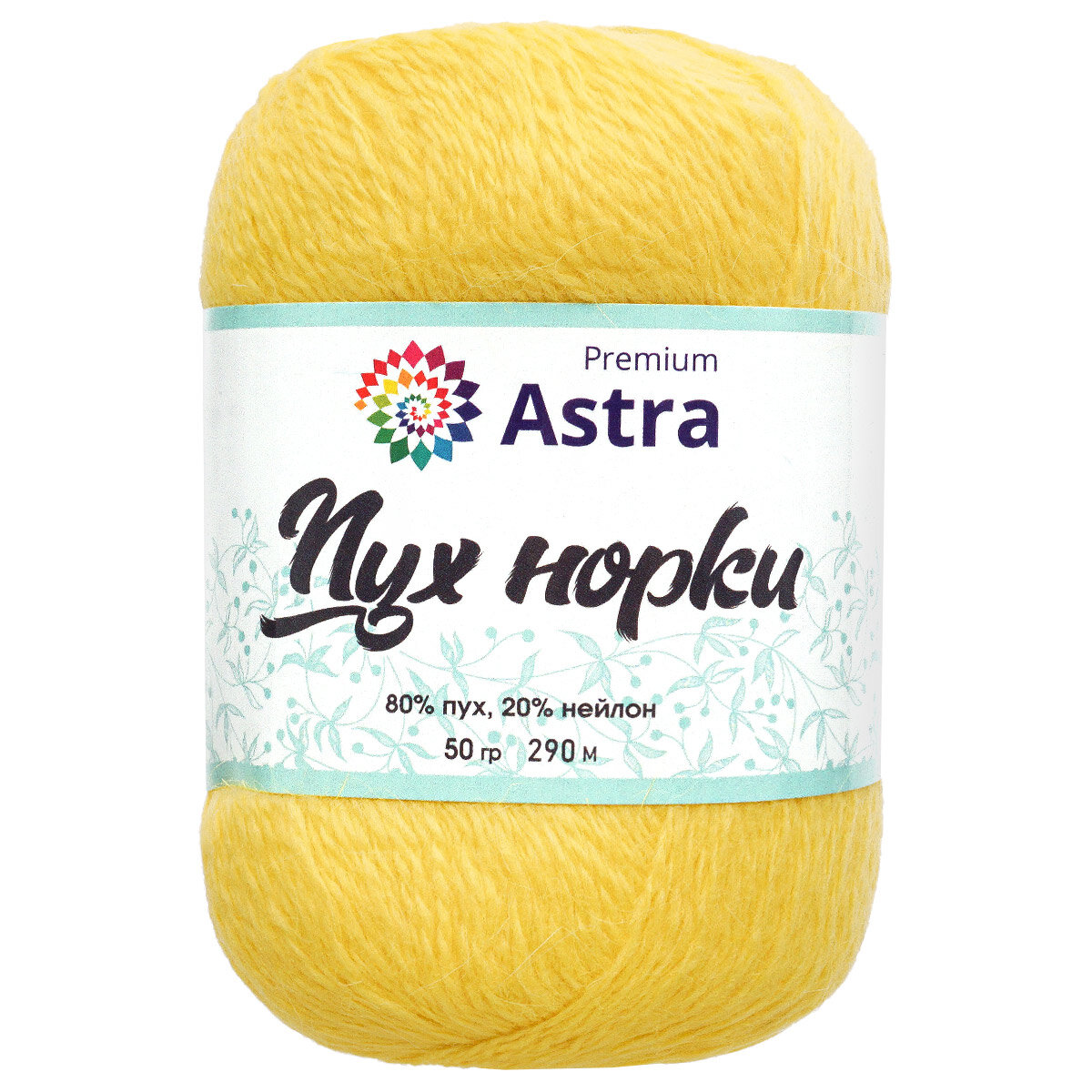 Пряжа Astra Premium "Пух норки", 50 гр 290 м, 80% пух, 20% нейлон, нить 20 гр, 036 горчичный