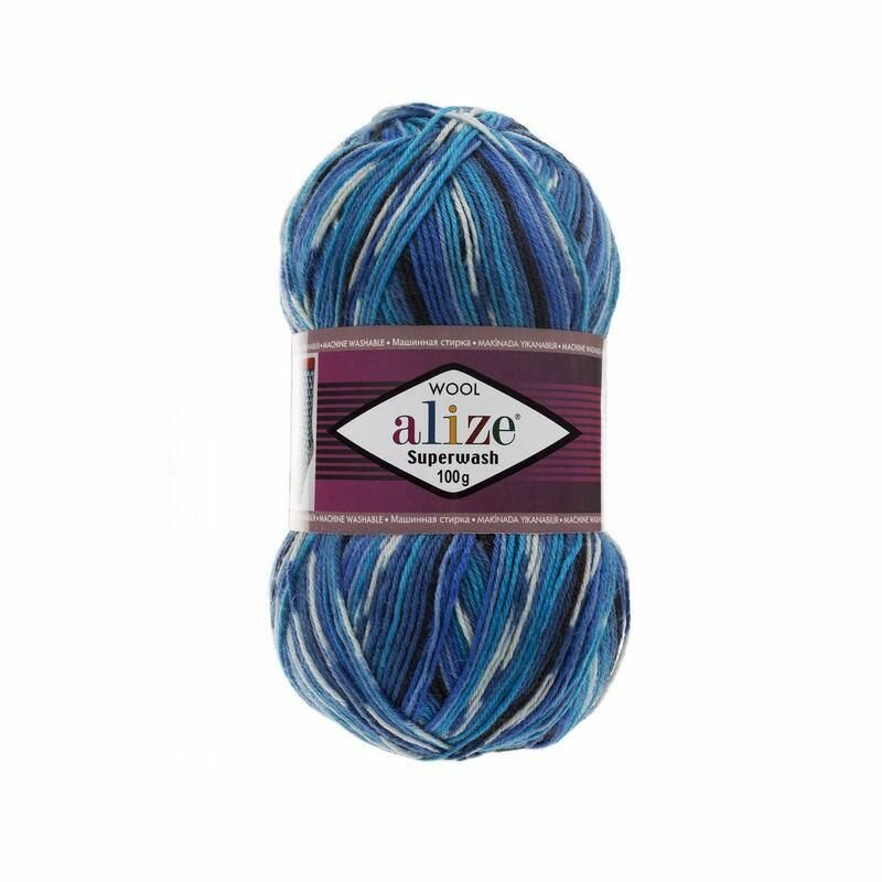 Пряжа Alize Superwash 100 белый-синий-бирюза (4446), 75%шерсть/25%полиамид, 420м, 100г, 1шт