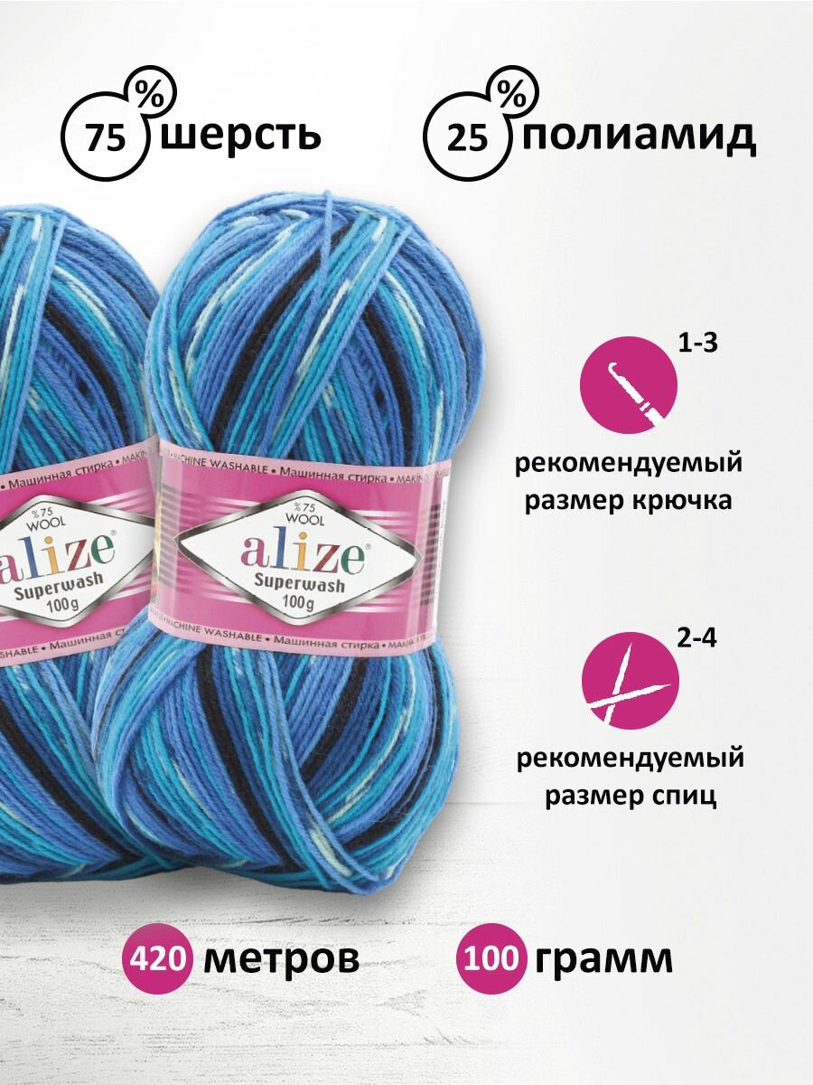 Пряжа Superwash Comfort Socks Alize (7840), 100г, 420м, 75% шерсть, 25% полиамид (1 шт.)