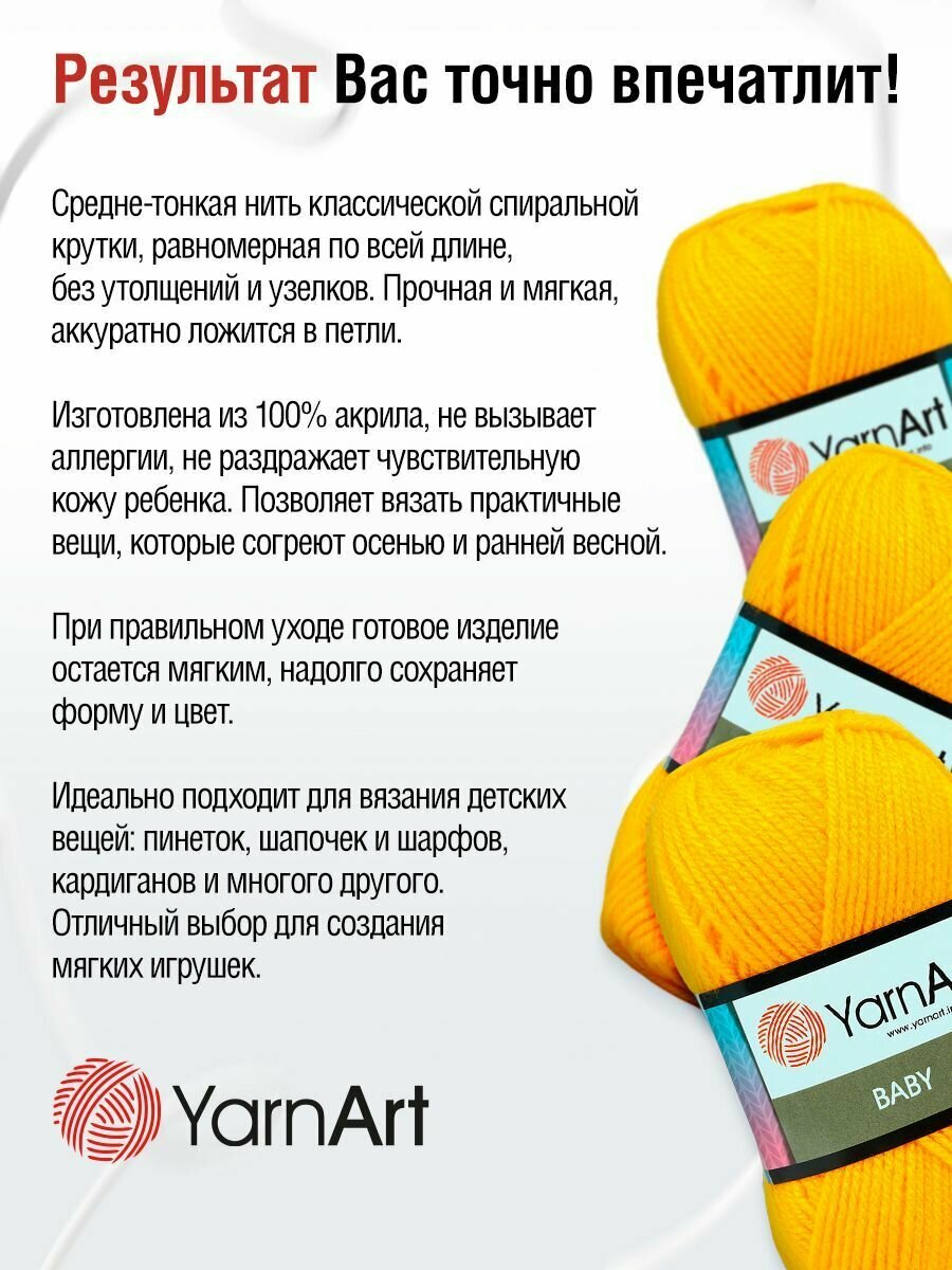 Пряжа BABY (YarnArt), желток - 32, 100% акрил, 5 мотков, 50 г, 150 м.