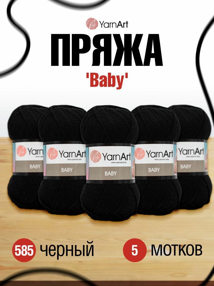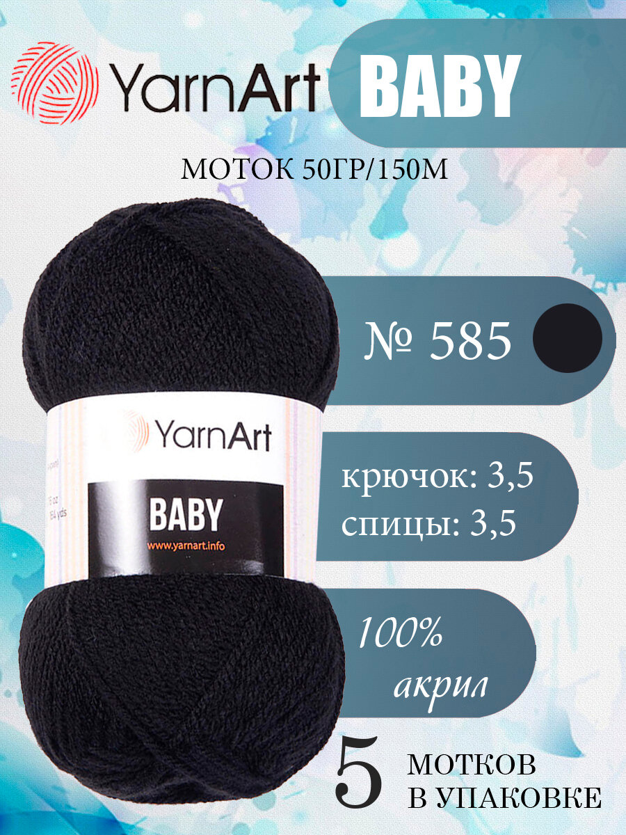 Купить Пряжа BABY (YarnArt), черный - 585, 100% акрил, 5 мотков, 50 г., 150 м.