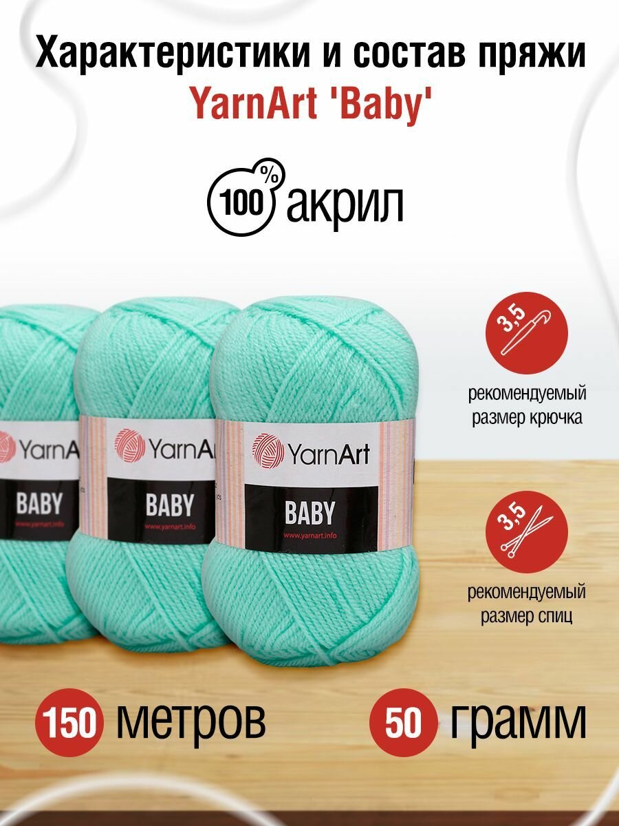 Купить Пряжа BABY (YarnArt), мята - 856, 100% акрил, 5 мотков, 50 г., 150 м.