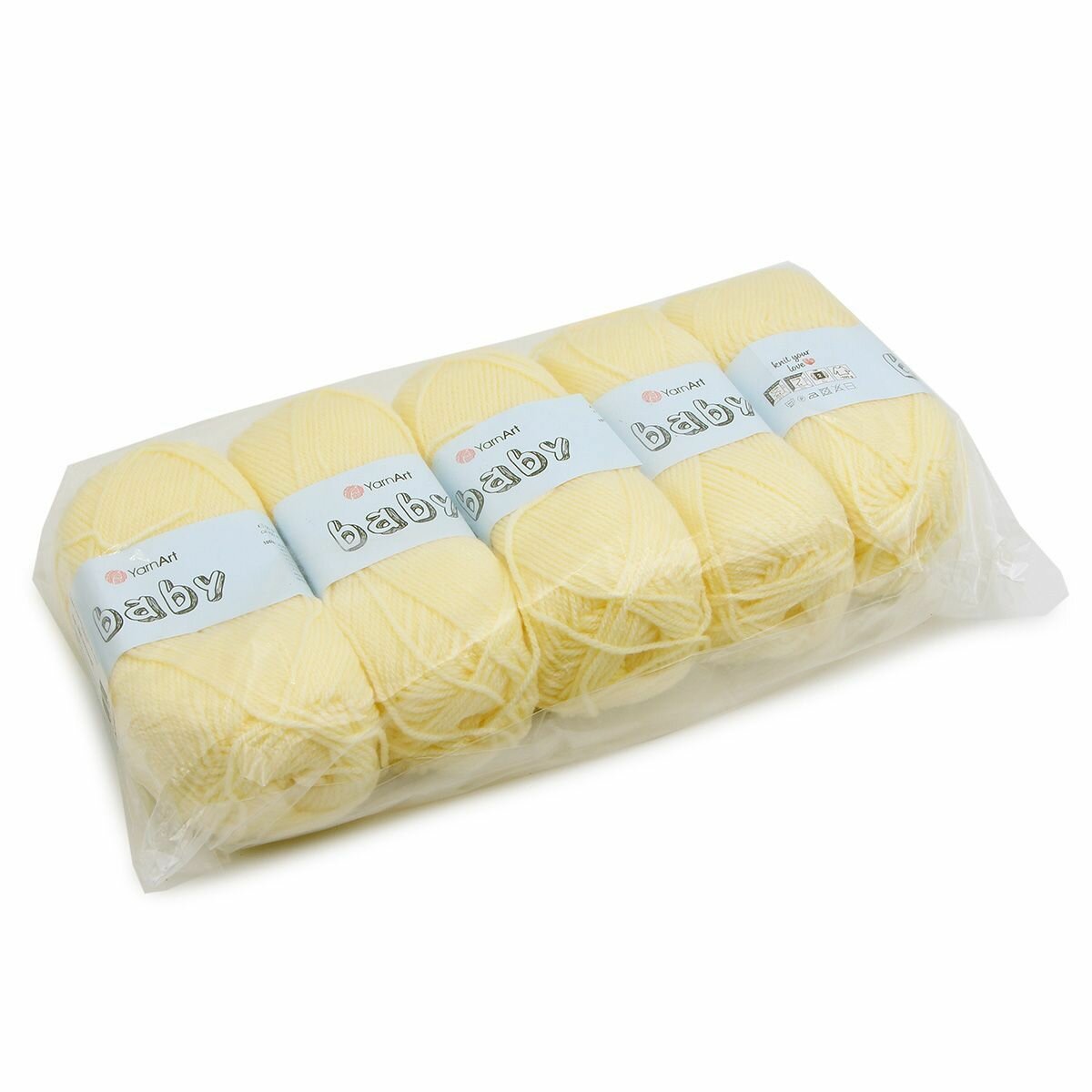 Пряжа для вязания YarnArt Baby (ЯрнАрт Беби) - 5 мотков 502 молочный, гипоаллергенная для детских изделий, 100% акрил, 150м/50г
