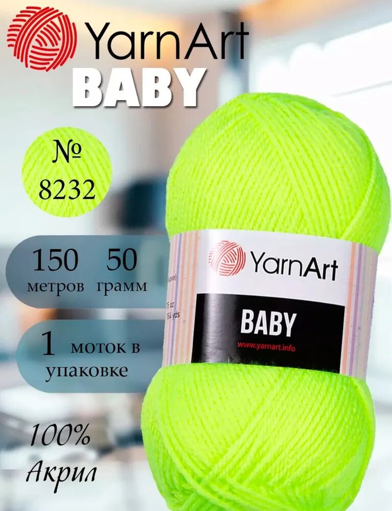 Пряжа BABY (YarnArt), салат неон - 8232, 100% акрил, 5 мотков, 50 г, 150 м.