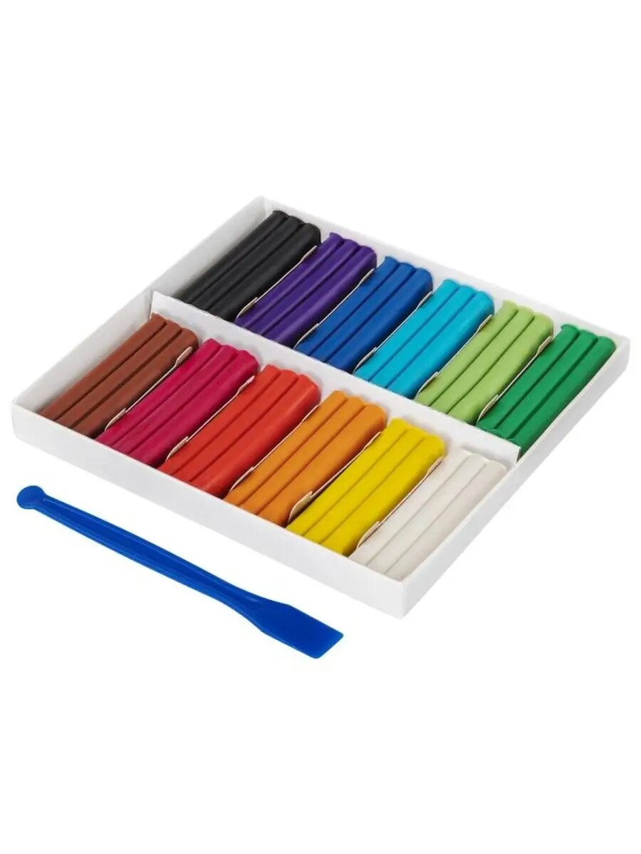 | Комплектация | в составе набора 12 брусков по 20 г разных цветов: белый / черный / коричневый / желтый / оранжевый / красный / розовый / фиолетовый / сиреневый / голубой / синий / зеленый. Масса набора – 240 г. Со стеком. |