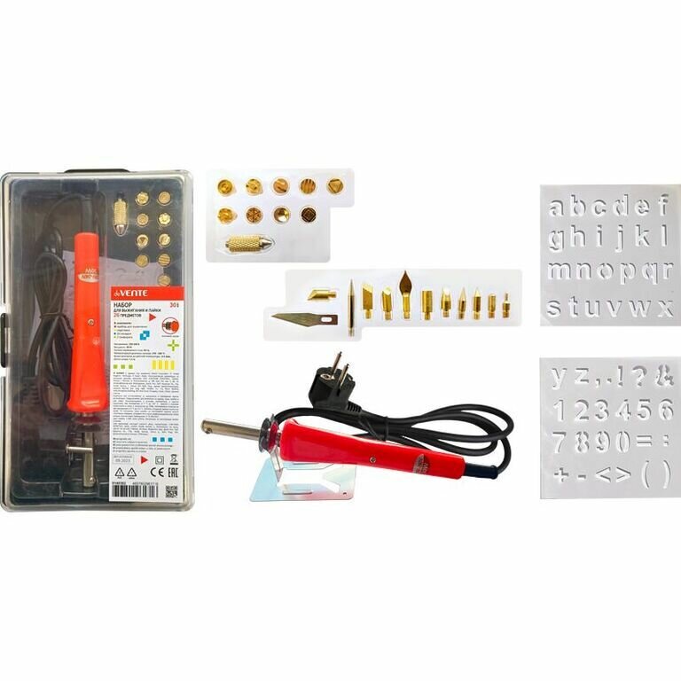 Купить Набор для выжигания deVENTE "Pyrograph", прибор с подставкой и насадками, 2 трафарета, пластиковый кейс