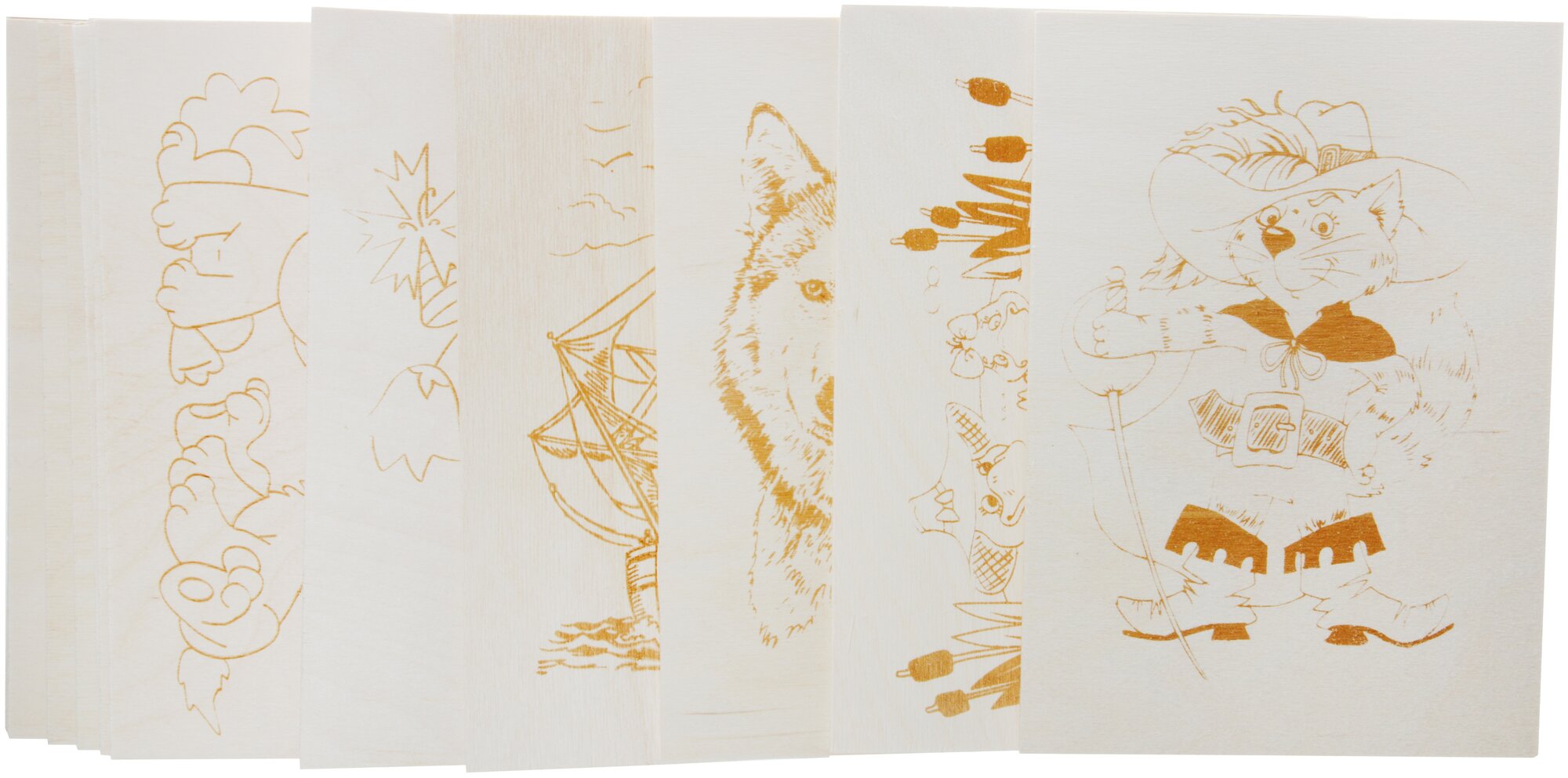 | Подробная комплектация | В набор входят: - отечественный выжигательный прибор с двумя режимами работы; - 8 дощечек (210х150мм) для выжигания с рисунками, нанесенными специальной краской, не выделяющей вредных веществ в процессе горения; - 4 дощечки (210х150мм) без рисунка; - паспорт на выжигательный прибор. |