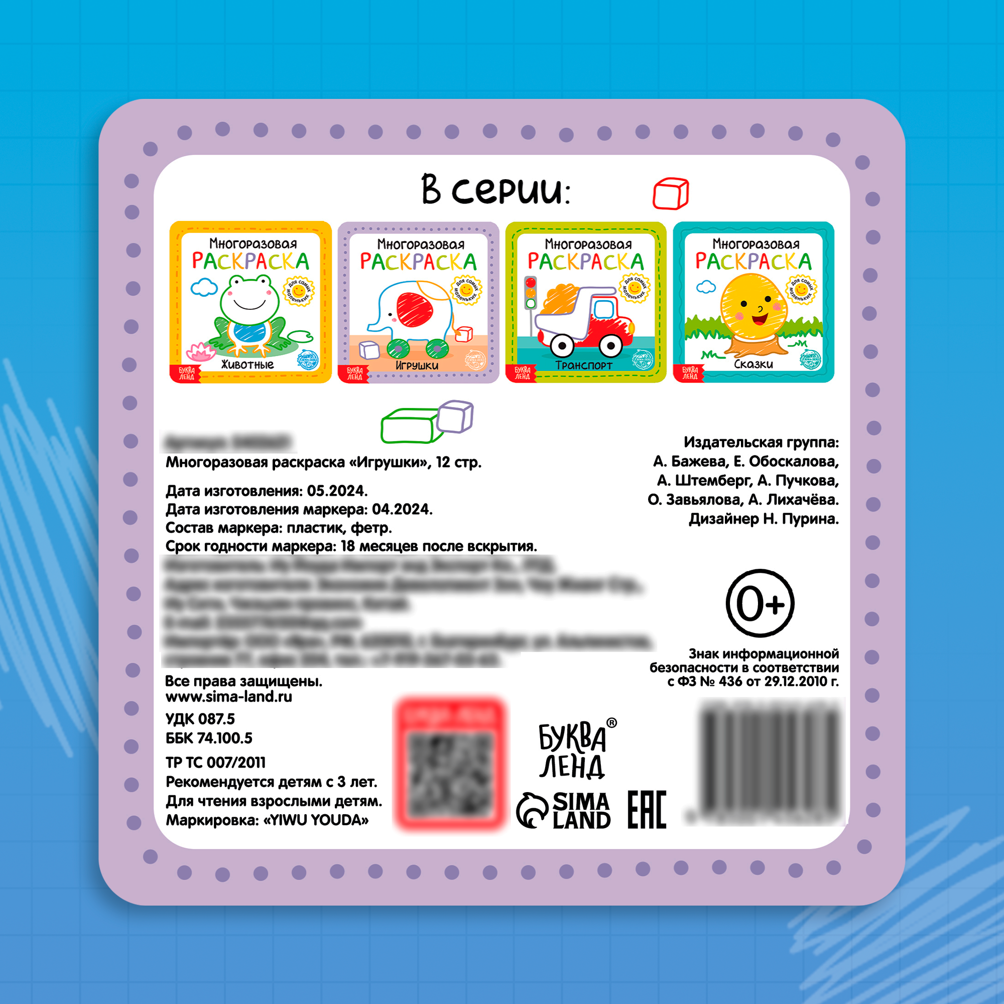 Ниже Вы можете прочитать отзывы на Многоразовая раскраска с маркерами "Игрушки", 12 страниц, пиши стирай, ознакомится с подробными характеристиками, посмотреть интересные обзоры и фотографии на Многоразовая раскраска с маркерами "Игрушки", 12 страниц, пиши стирай.