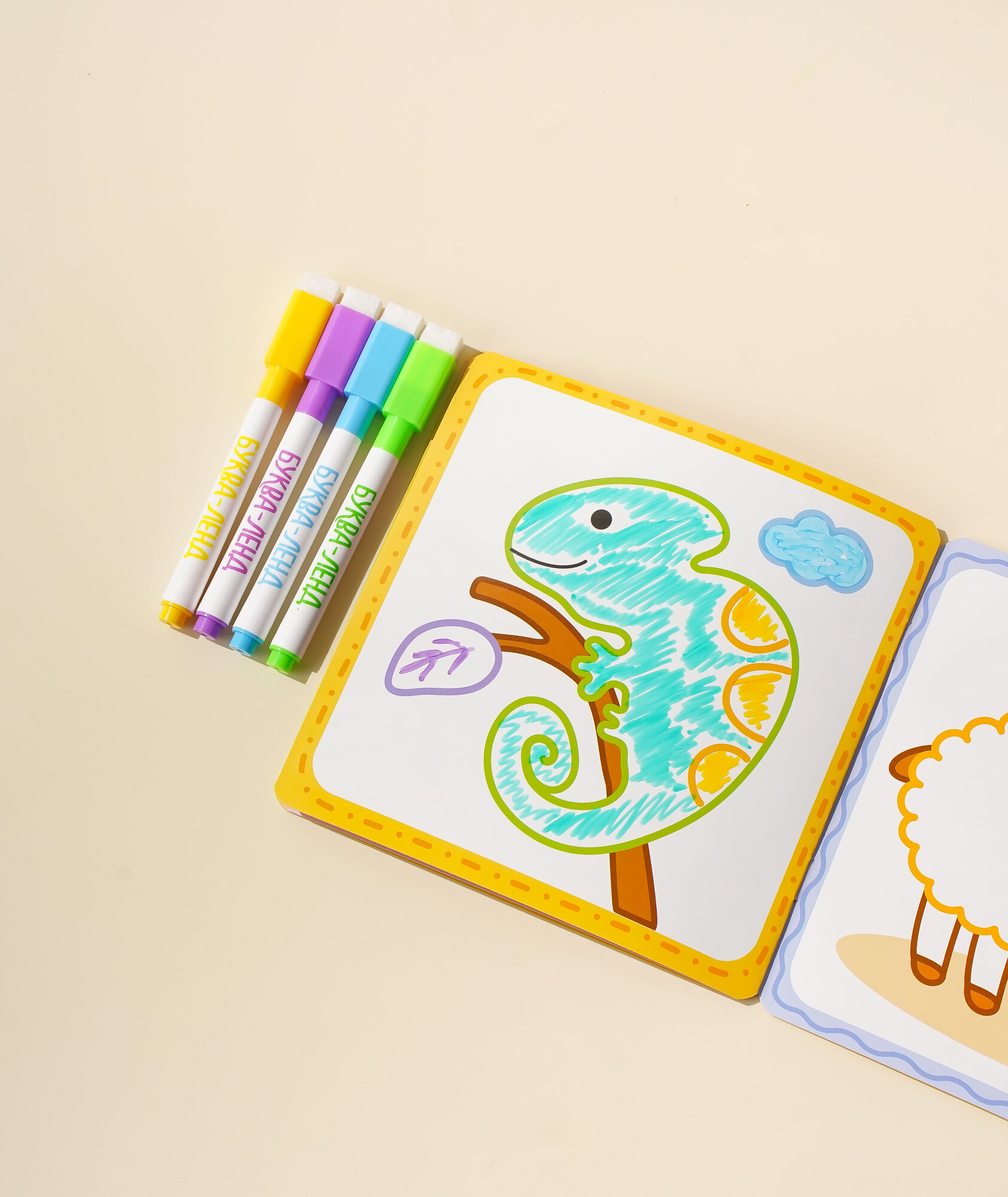 Купить Многоразовая раскраска с маркерами "Животные", 12 страниц, пиши стирай