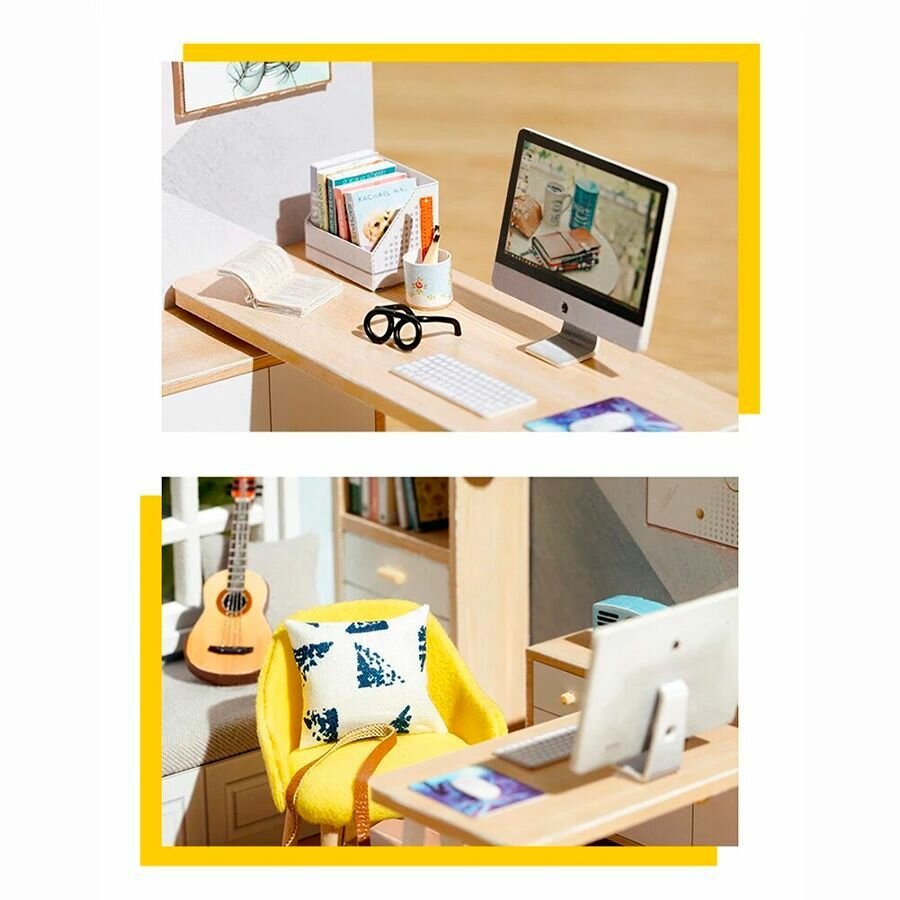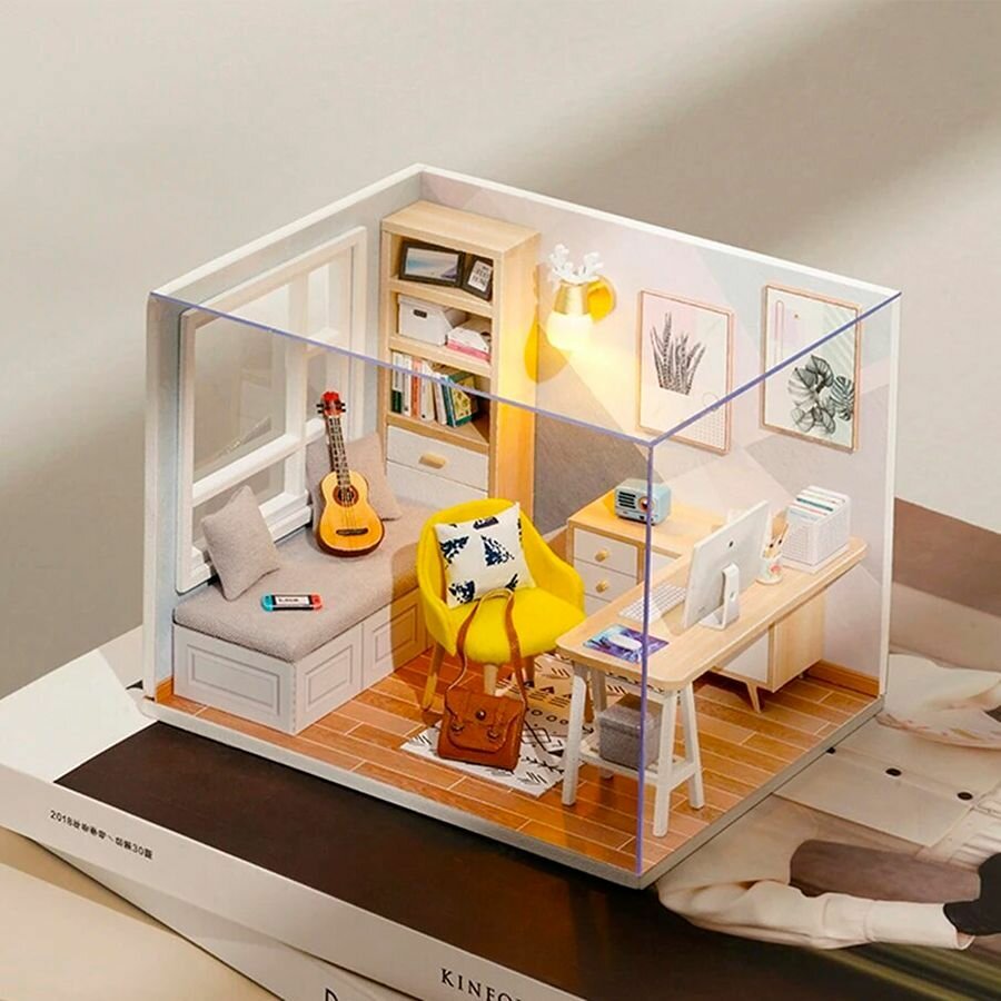 СохранитьИнтерьерный конструктор с подсветкой "Солнечный кабинет" , румбокс, миниатюра DIY House, набор в подарок для детей и взрослых интересное:
