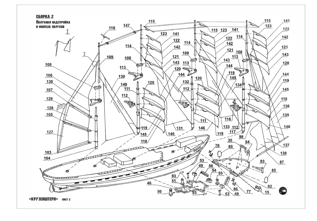 Сборная модель-копия. Парусный барк "Крузенштерн"