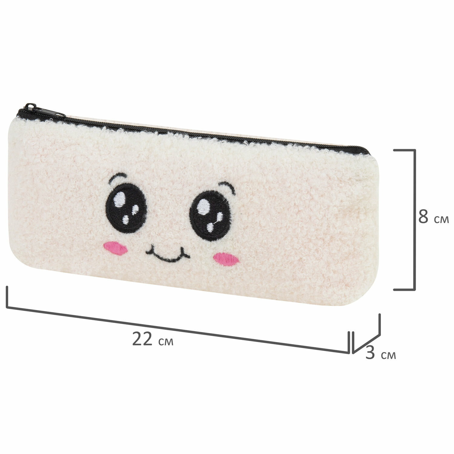 Купить Пенал Юнландия, 1 отделение, плюш, Smiley face, белый, 22х8x3 см, 272269