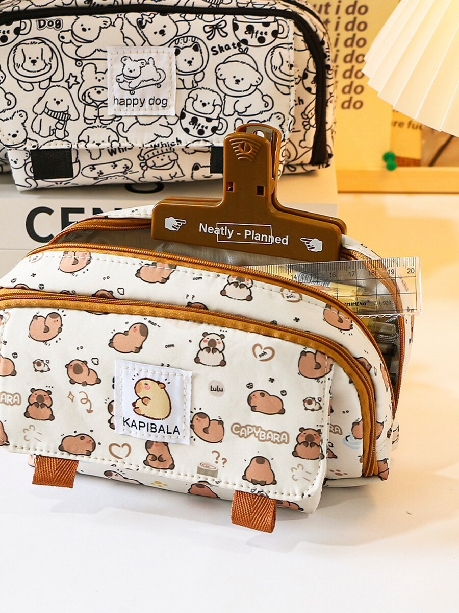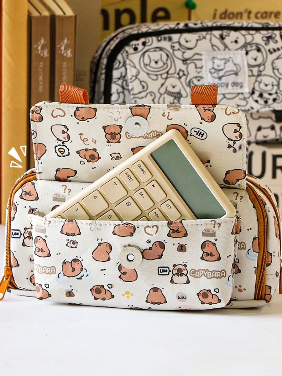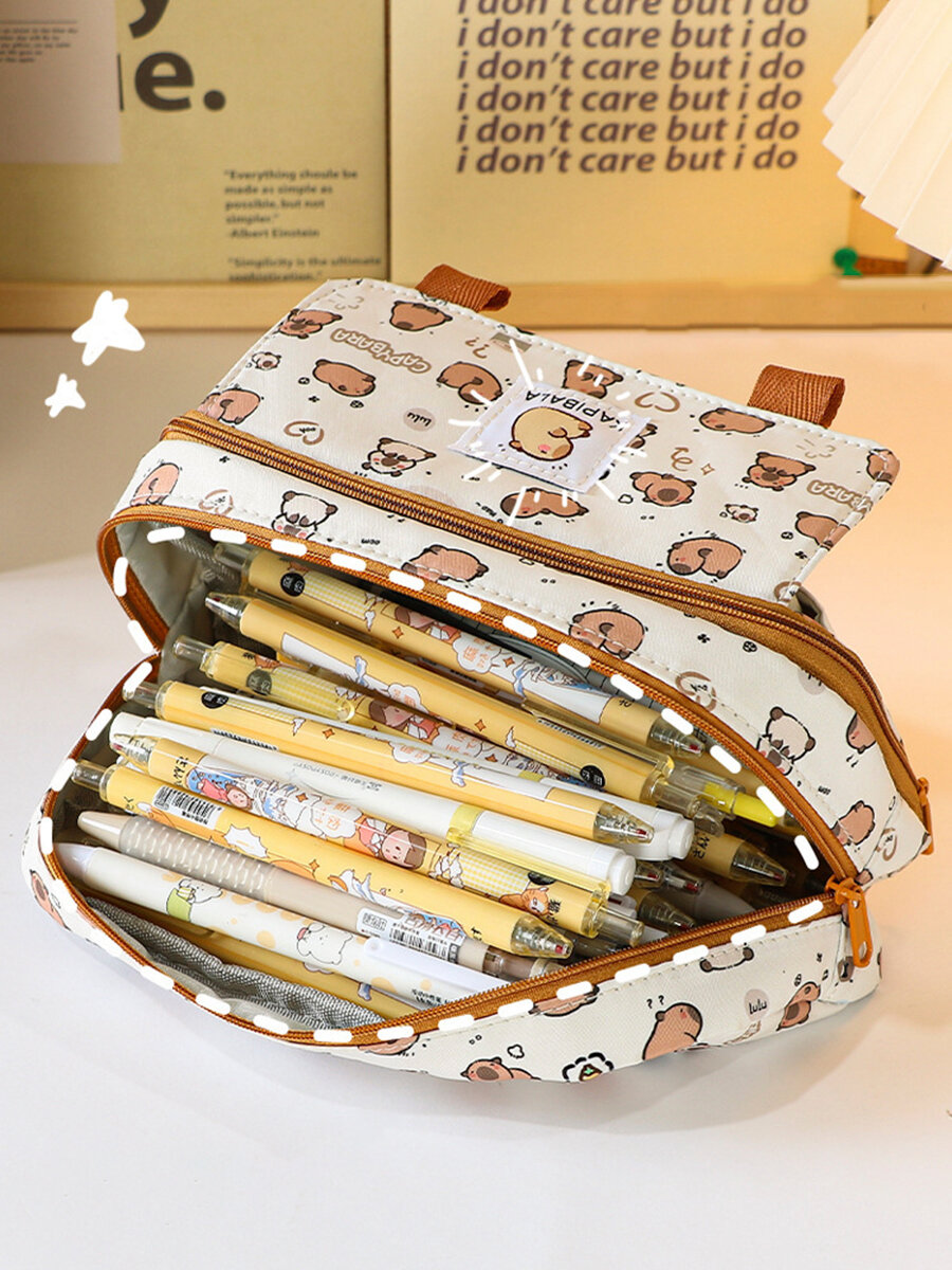 Школьный детский пенал для подростков с капибарой - Эстетичный канцелярский органайзер на молнии, 5 отделений