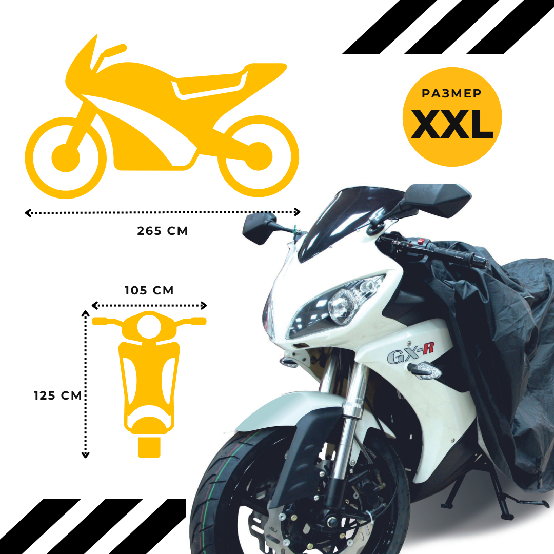 СохранитьЗащитный тент на мотоцикл ZDK Black, зашитный чехол для мотоцикла, Размер XXL, 265x125x105 см, полиэфирная тафта интересное: