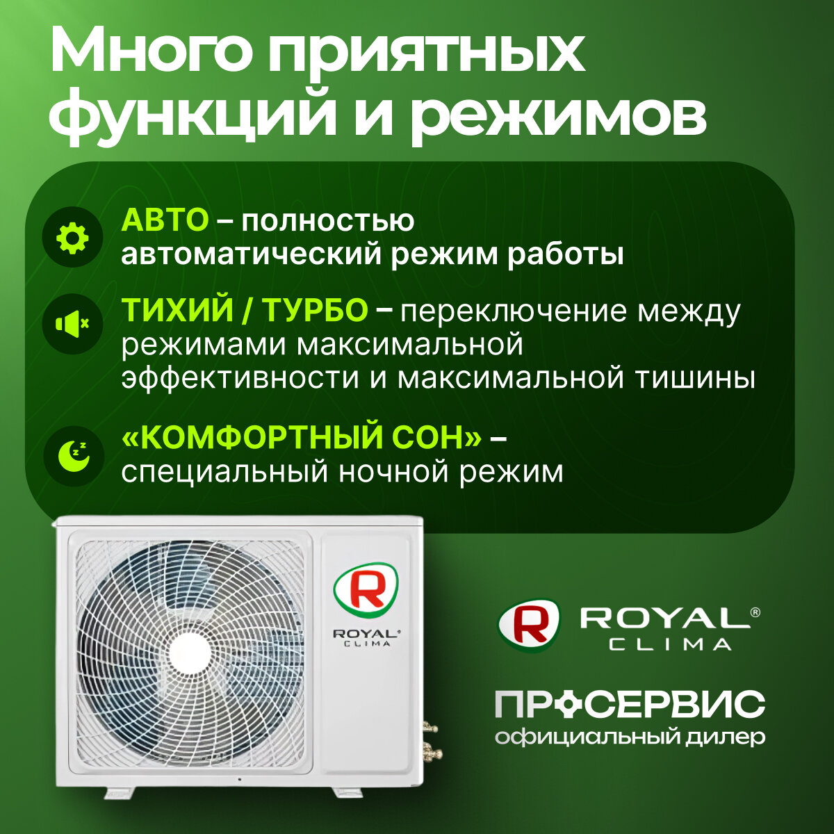 | Дополнительные режимы | авто / бриз / вентиляция / ночной / осушение / турбо / экорежим |
