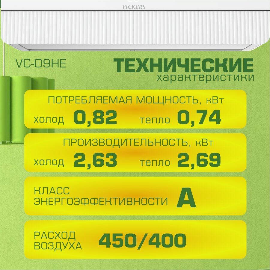 Сплит-система VICKERS QUEEN VC-09HE new бытовой кондиционер до 27 м2, компрессор GREE