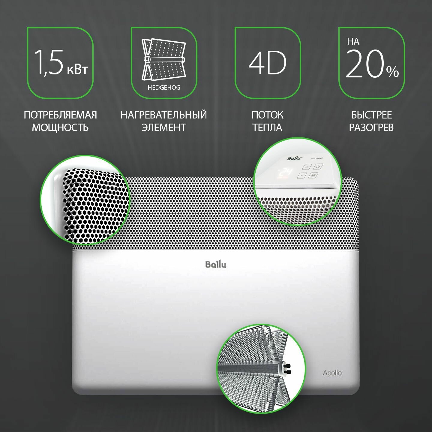 Электрический конвектор Ballu Apollo Transformer с блоком управления BEC/AT-1500-4E (электронный)