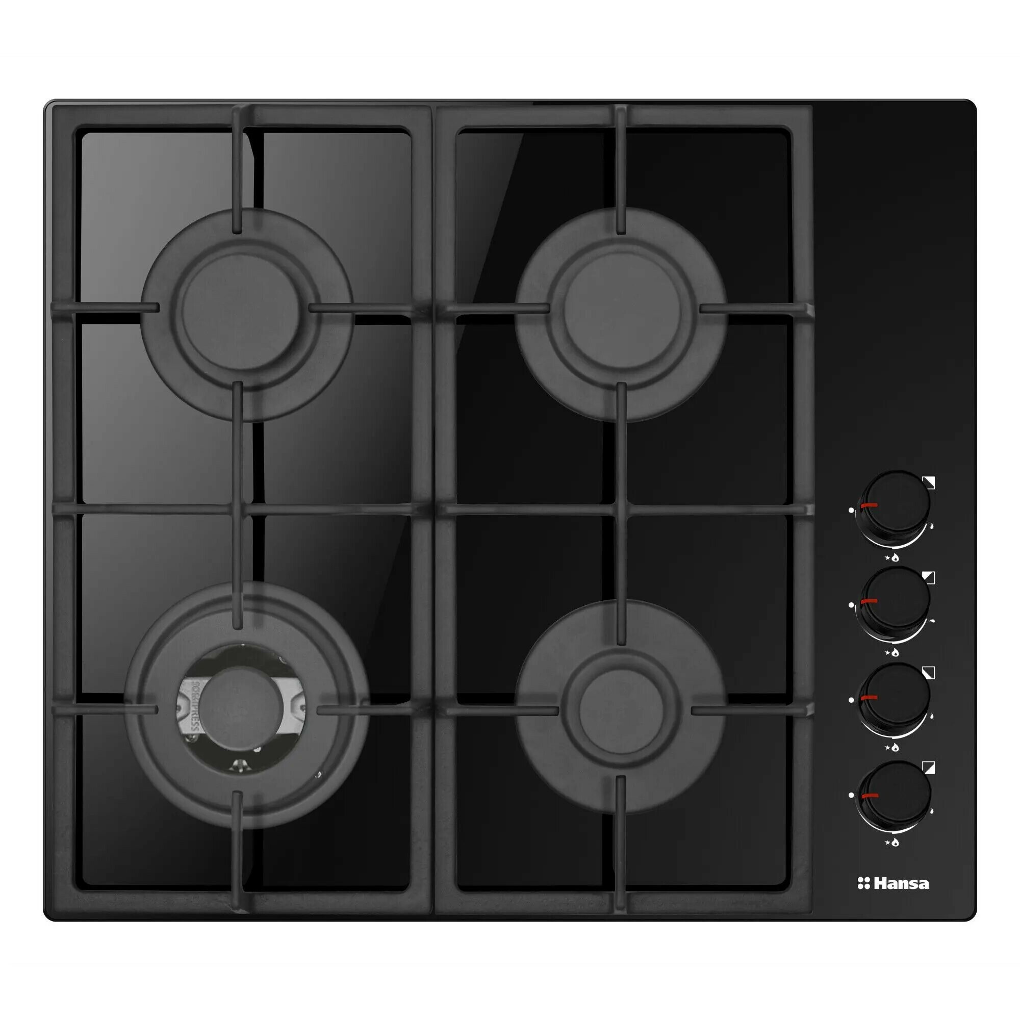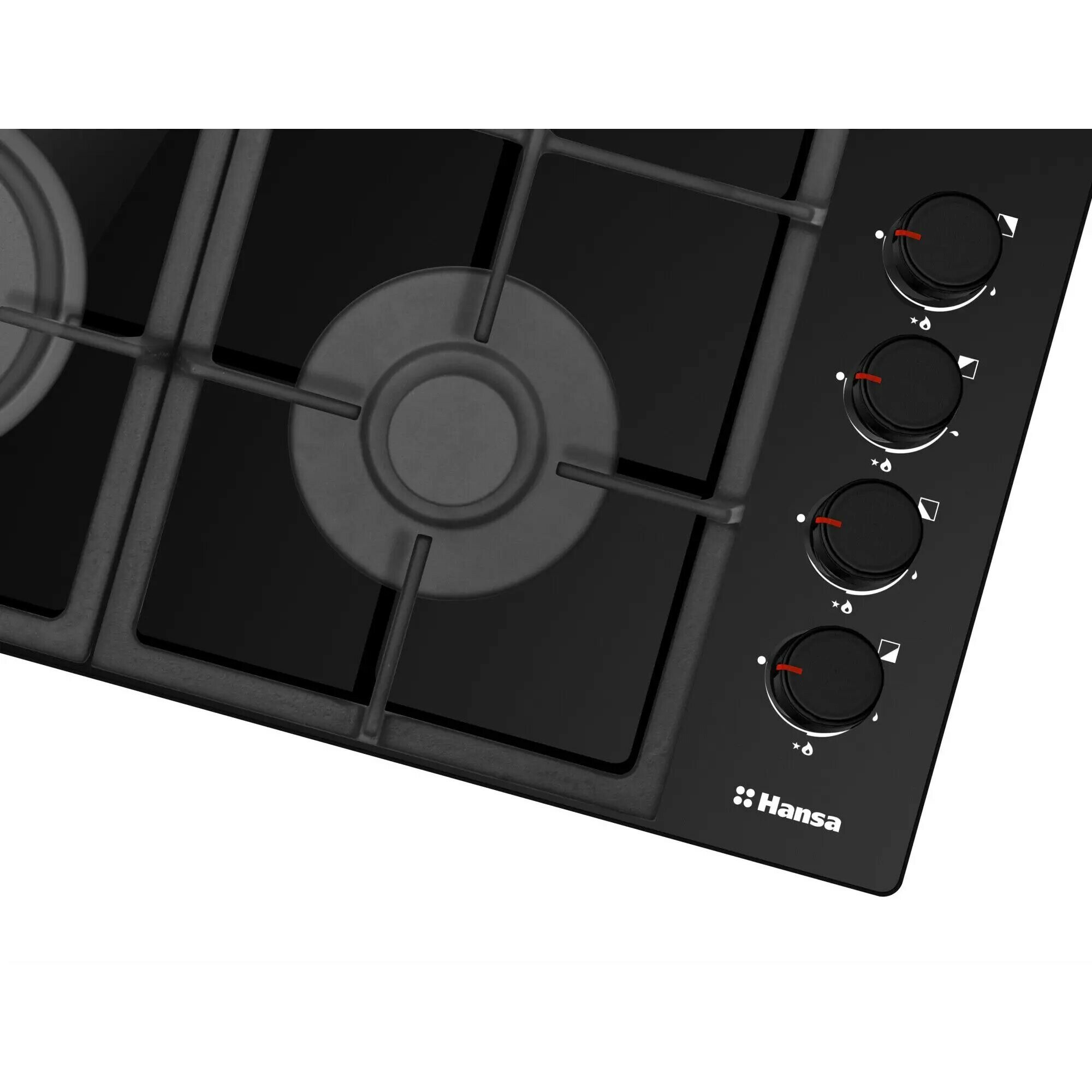 Газовая варочная поверхность Hansa BHKS661830, черный, закаленное стекло, 59 см, автоподжиг, газ-контроль, WOK