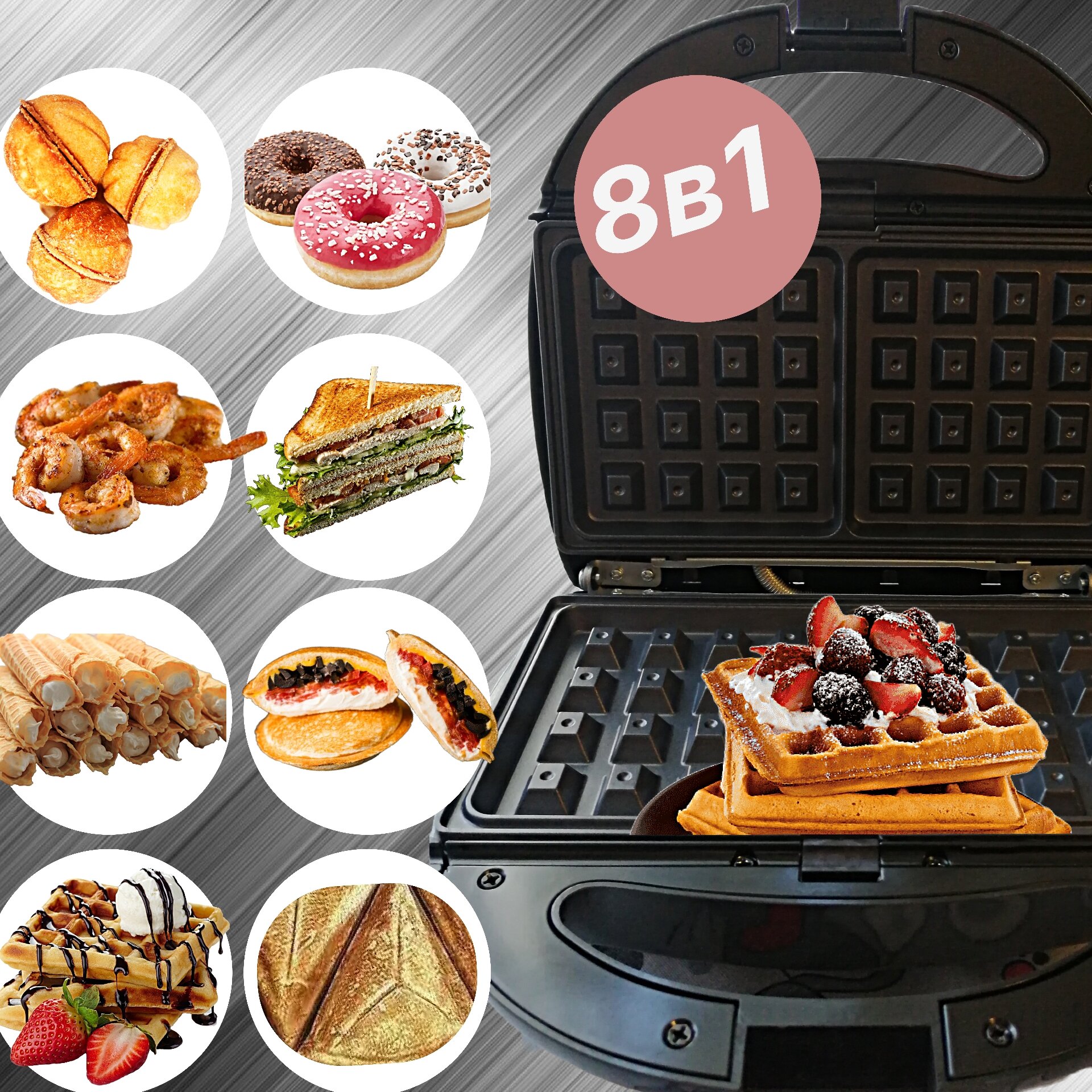 Мультипекарь 1500Вт, 8 пар антипригарных форм для выпечки вафель, орешек, печенья, пончиков интересное: