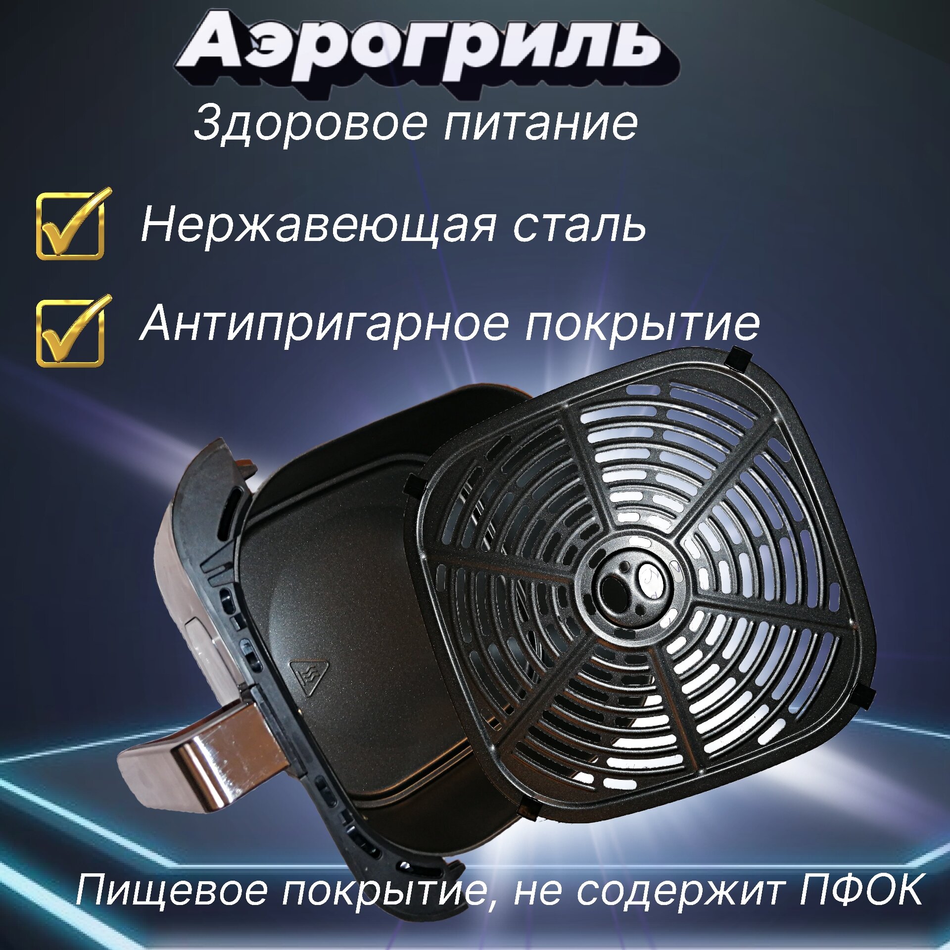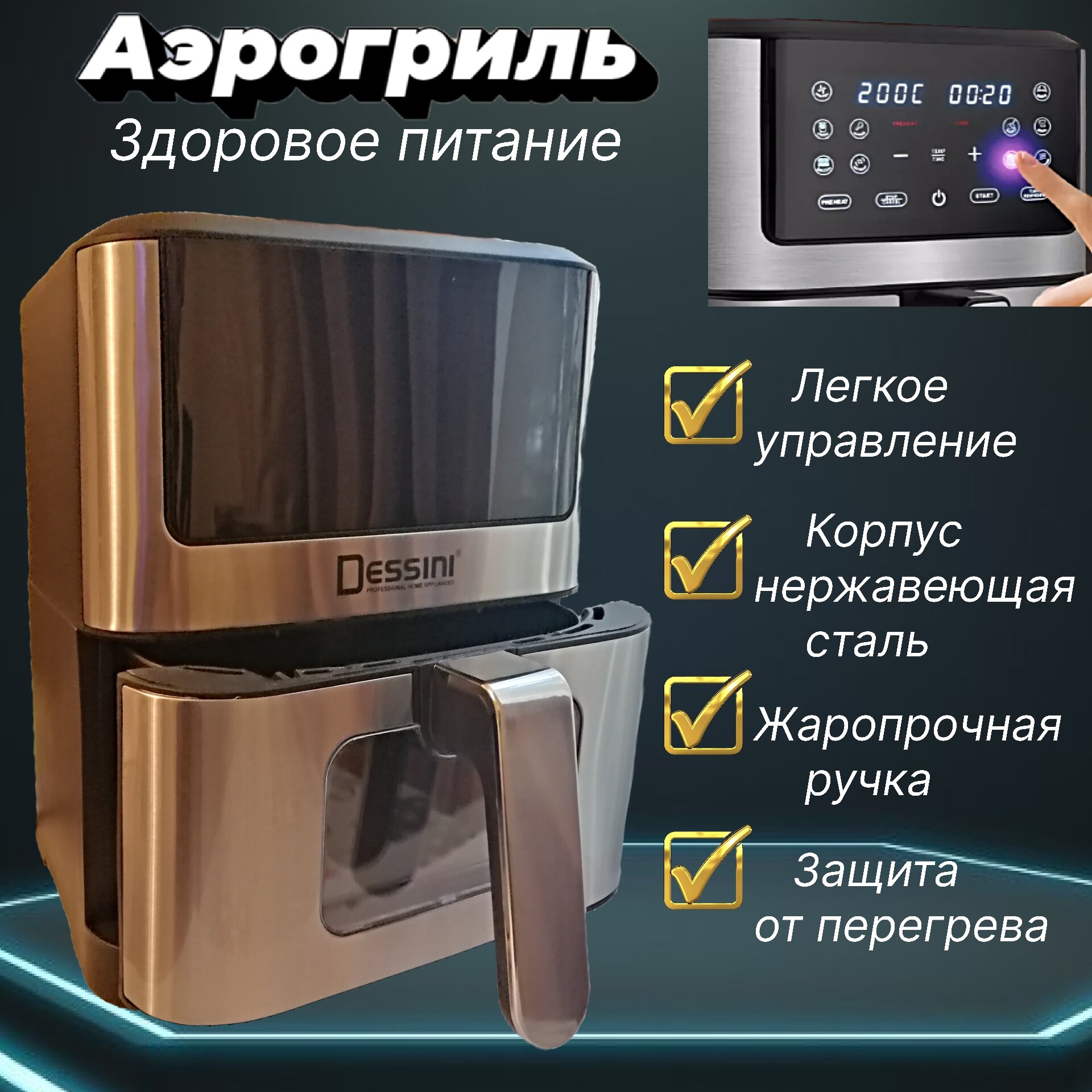 Фритюр электрический 1500Вт, 8 программ, с сенсорным экраном, 5.2 литра, черный, аэрогриль для дома