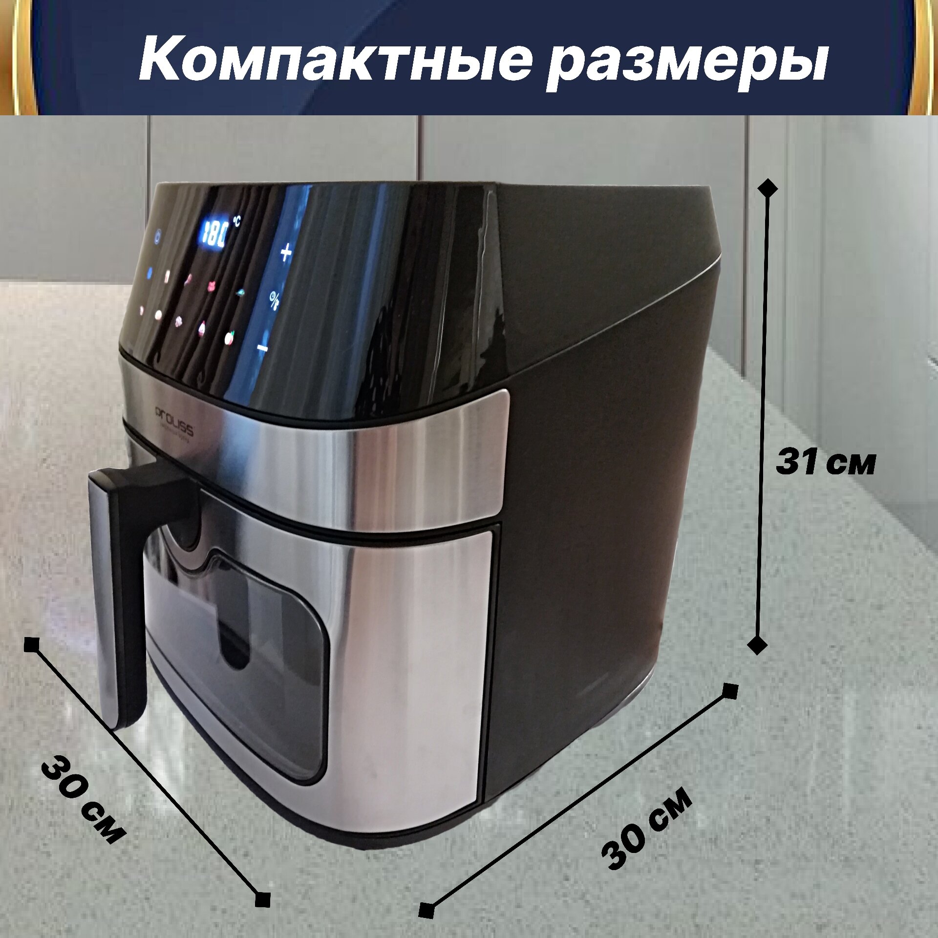 Фритюр электрический 1500Вт, 8 программ, с сенсорным экраном, 5.2 литра, черный, аэрогриль для дома