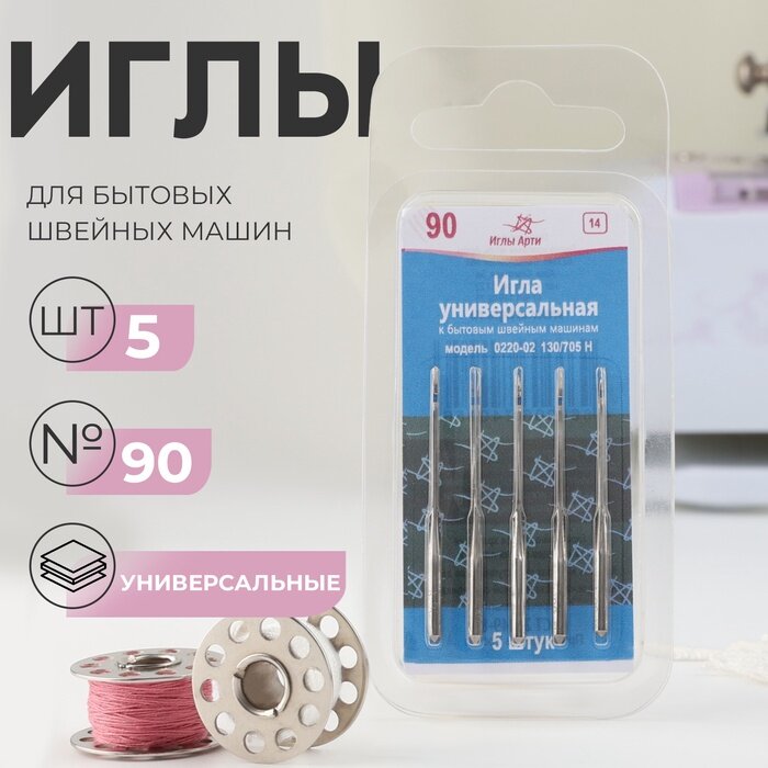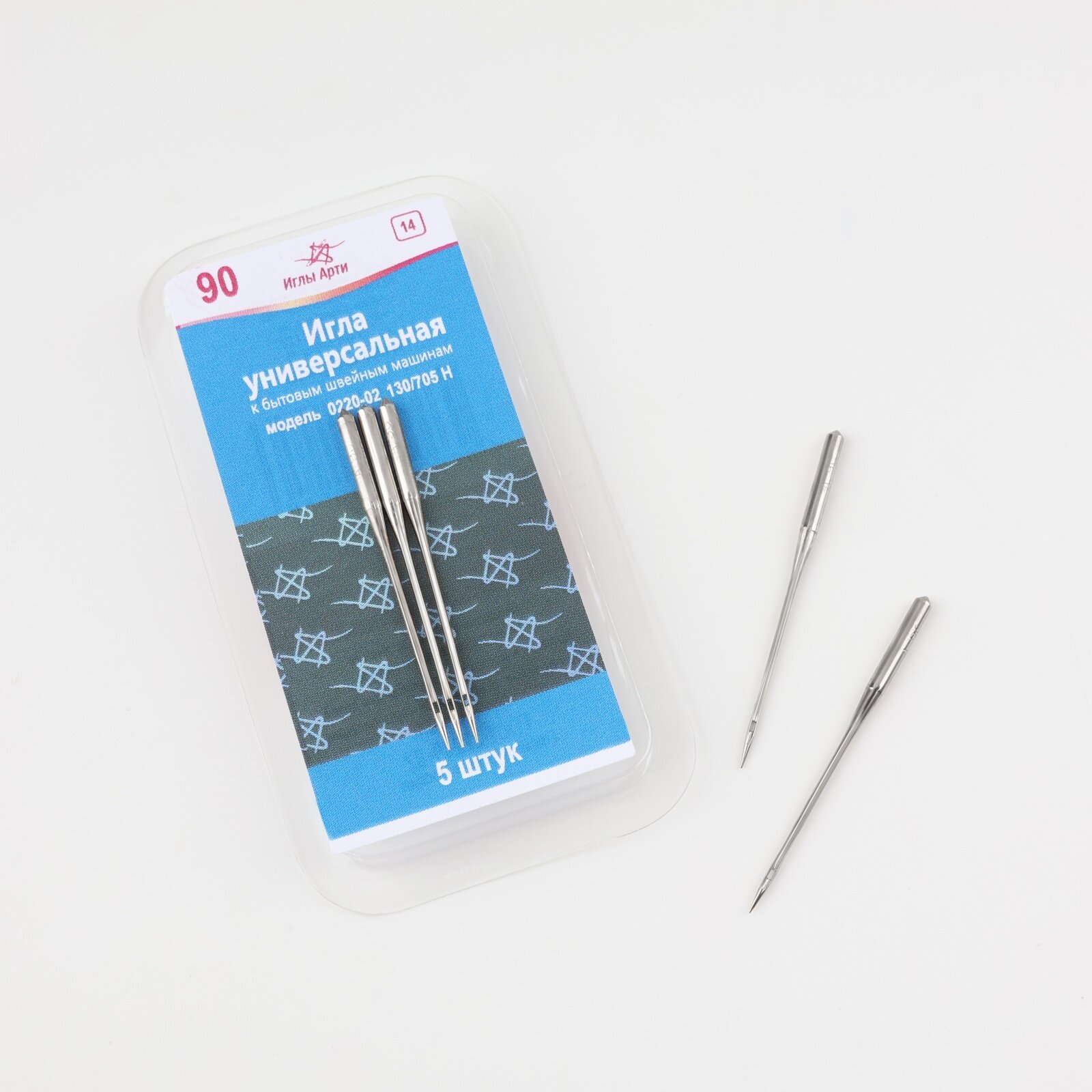 Иглы для швейных машин № 90, универсальные, 5 шт, диаметр 0,9 мм, Арти