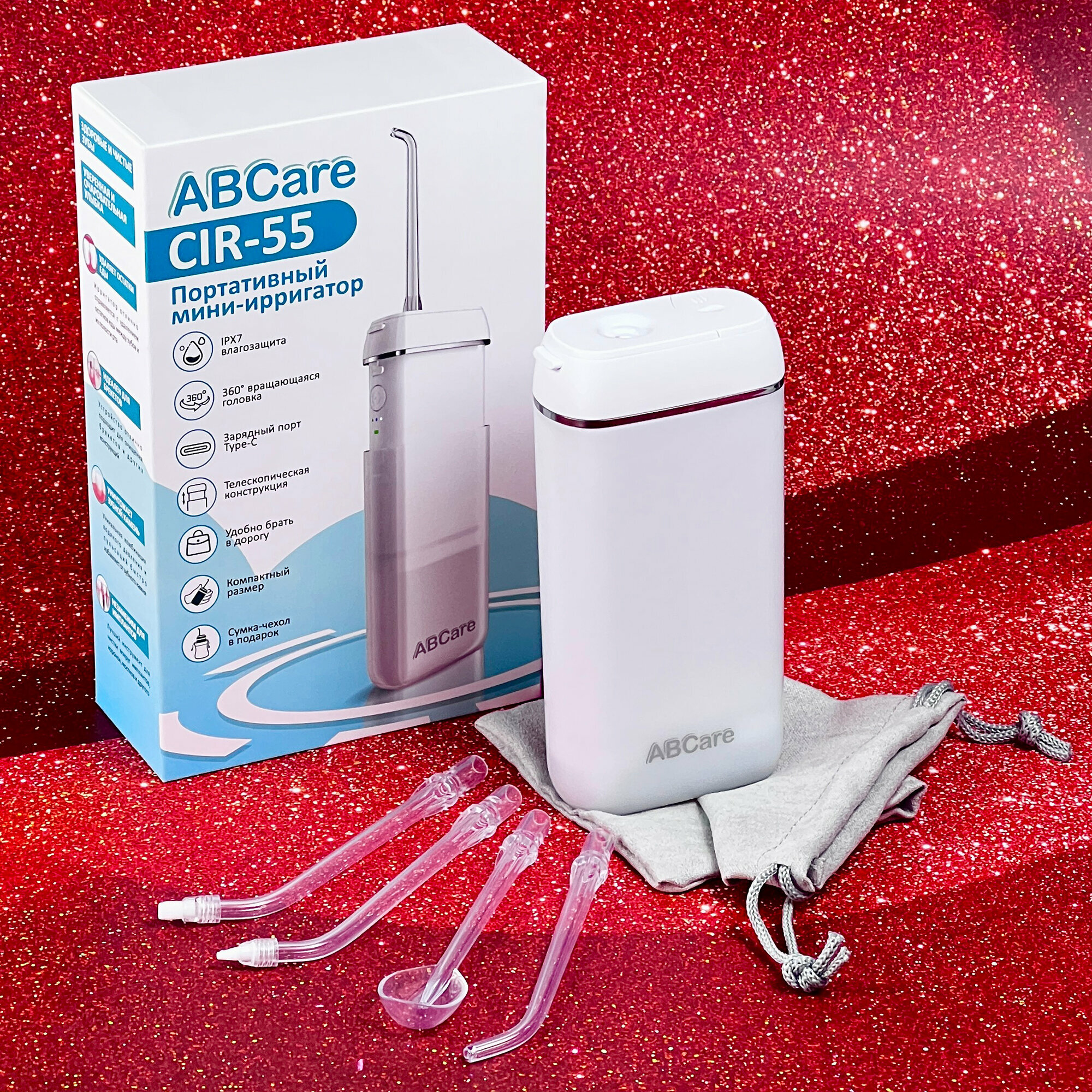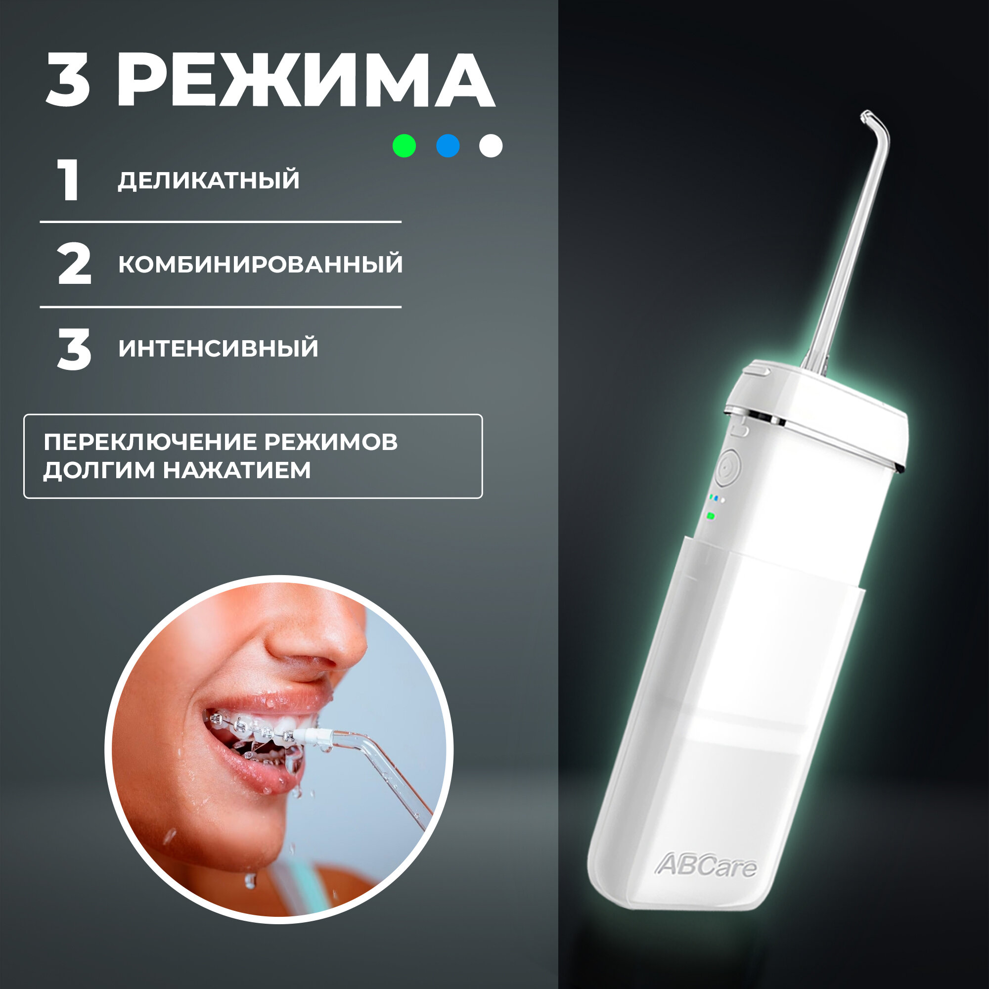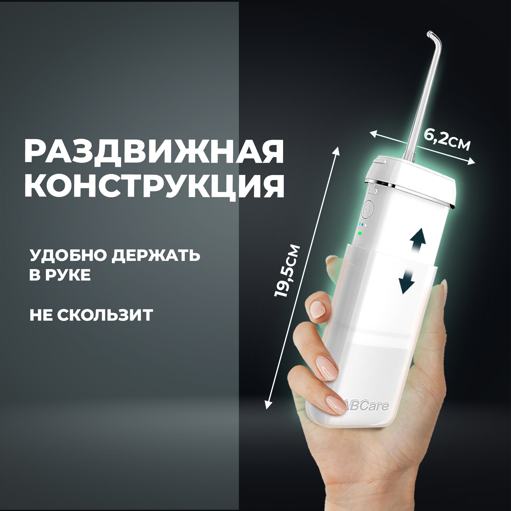 Ирригатор для зубов, ABCare, CIR-55, белый, 4 сменные насадки, поворот насадок на 360 // портативный ирригатор для полости рта, как ирригатор xiaomi