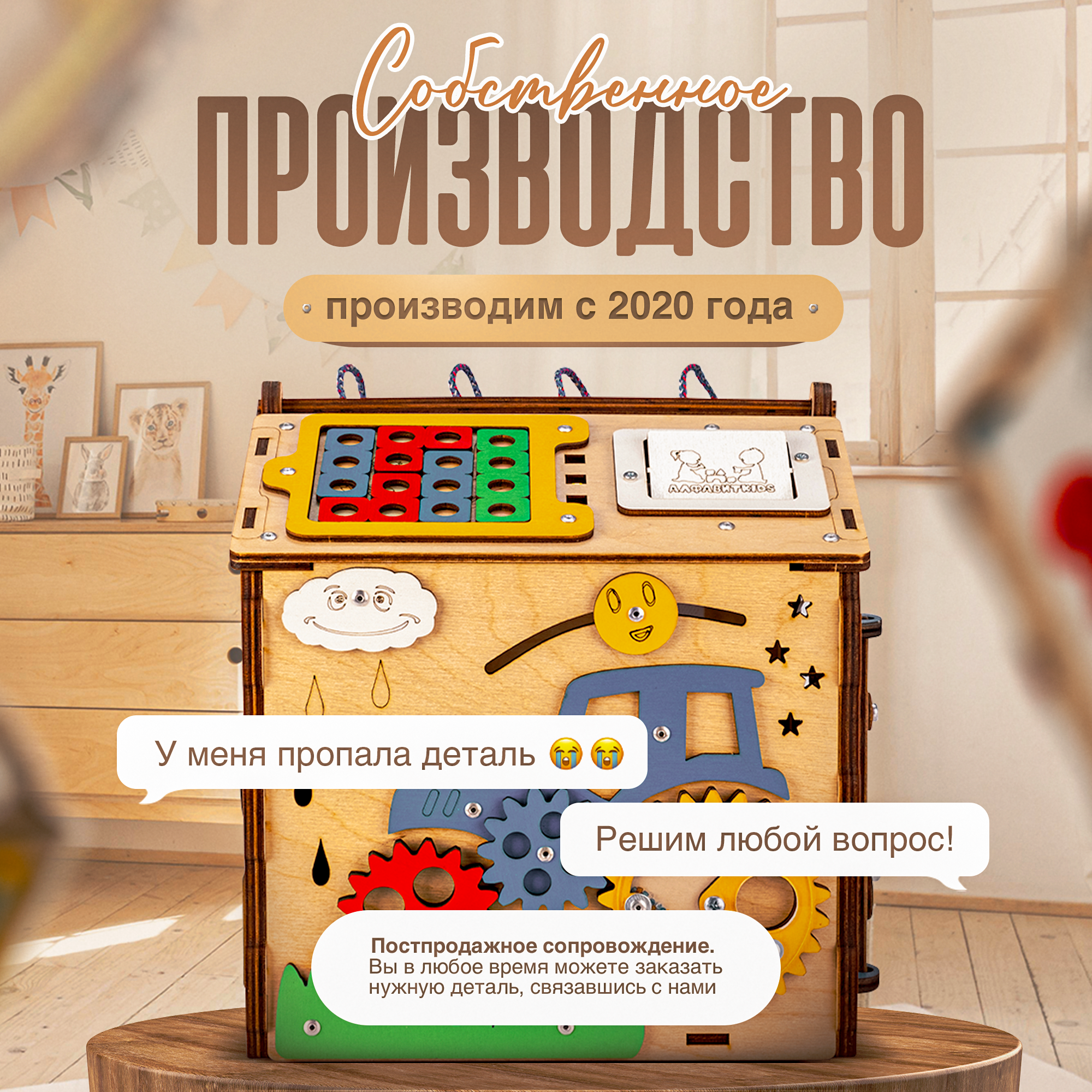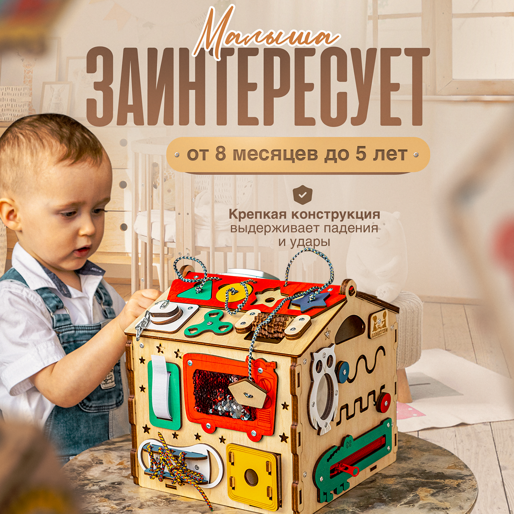 Купить Бизиборд домик со светом и игрушками для детей от 1 года Алфавит KIDS