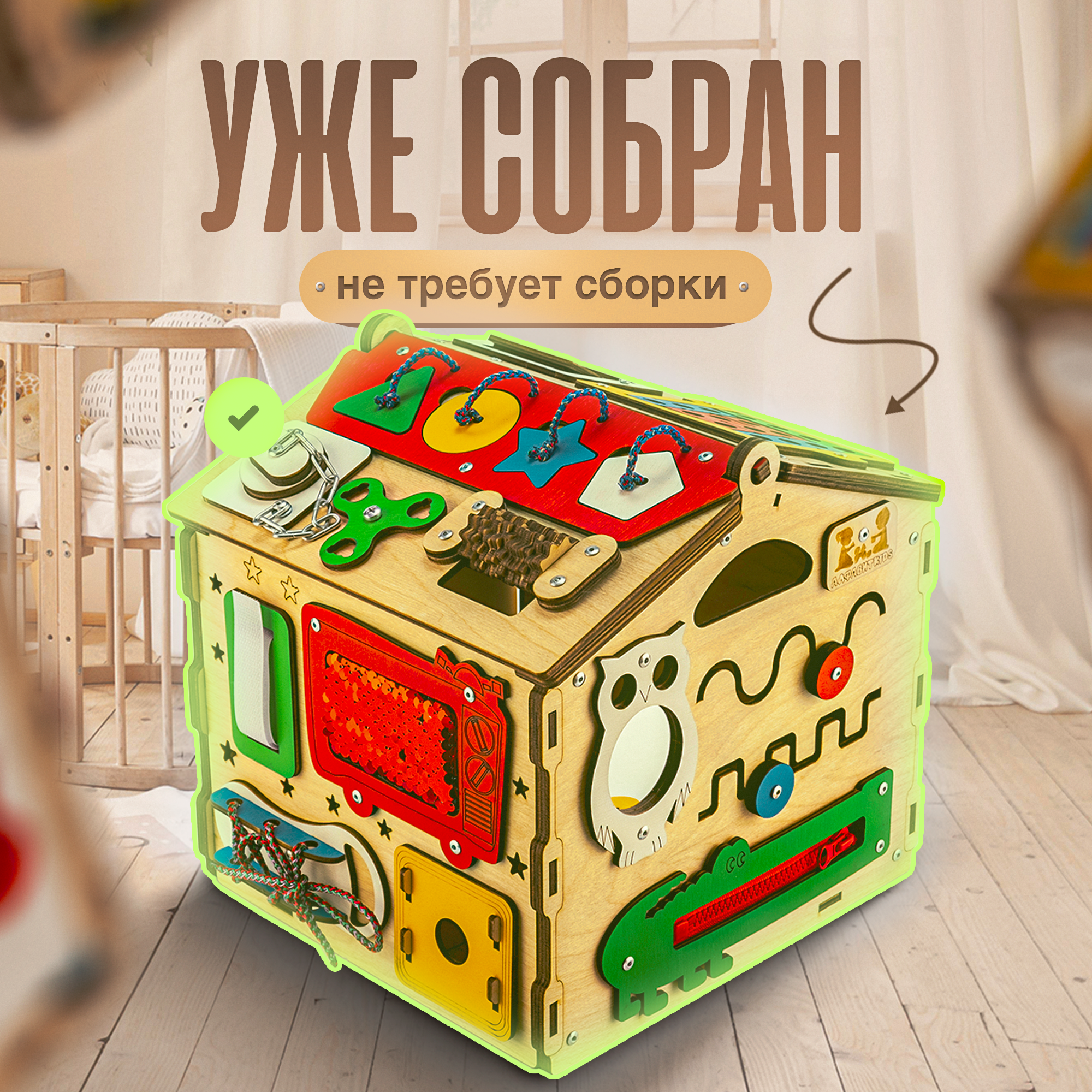 Бизиборд домик со светом и игрушками для детей от 1 года Алфавит KIDS интересное: