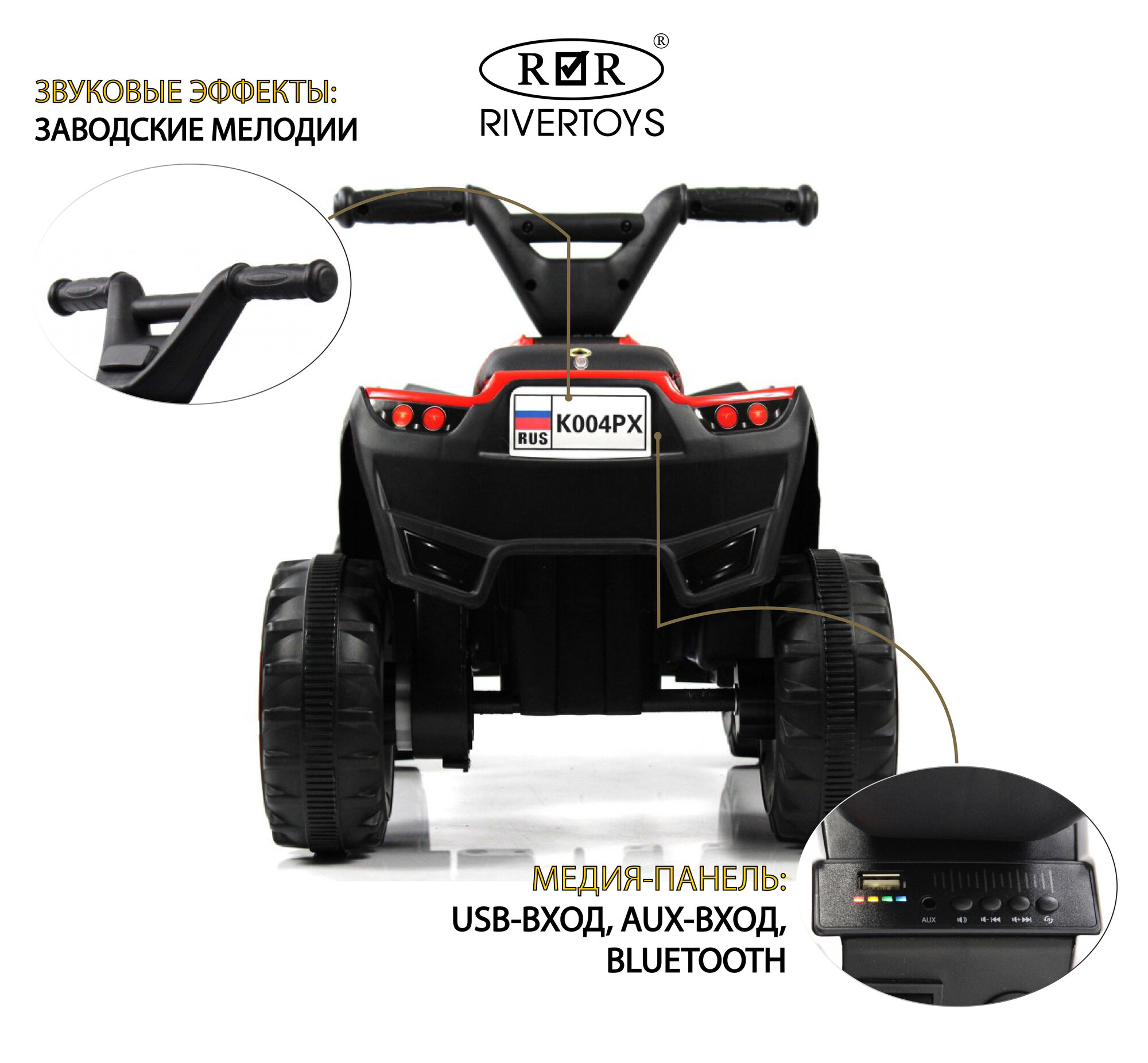 СохранитьRiverToys Детский электроквадроцикл K004PX красный интересное: