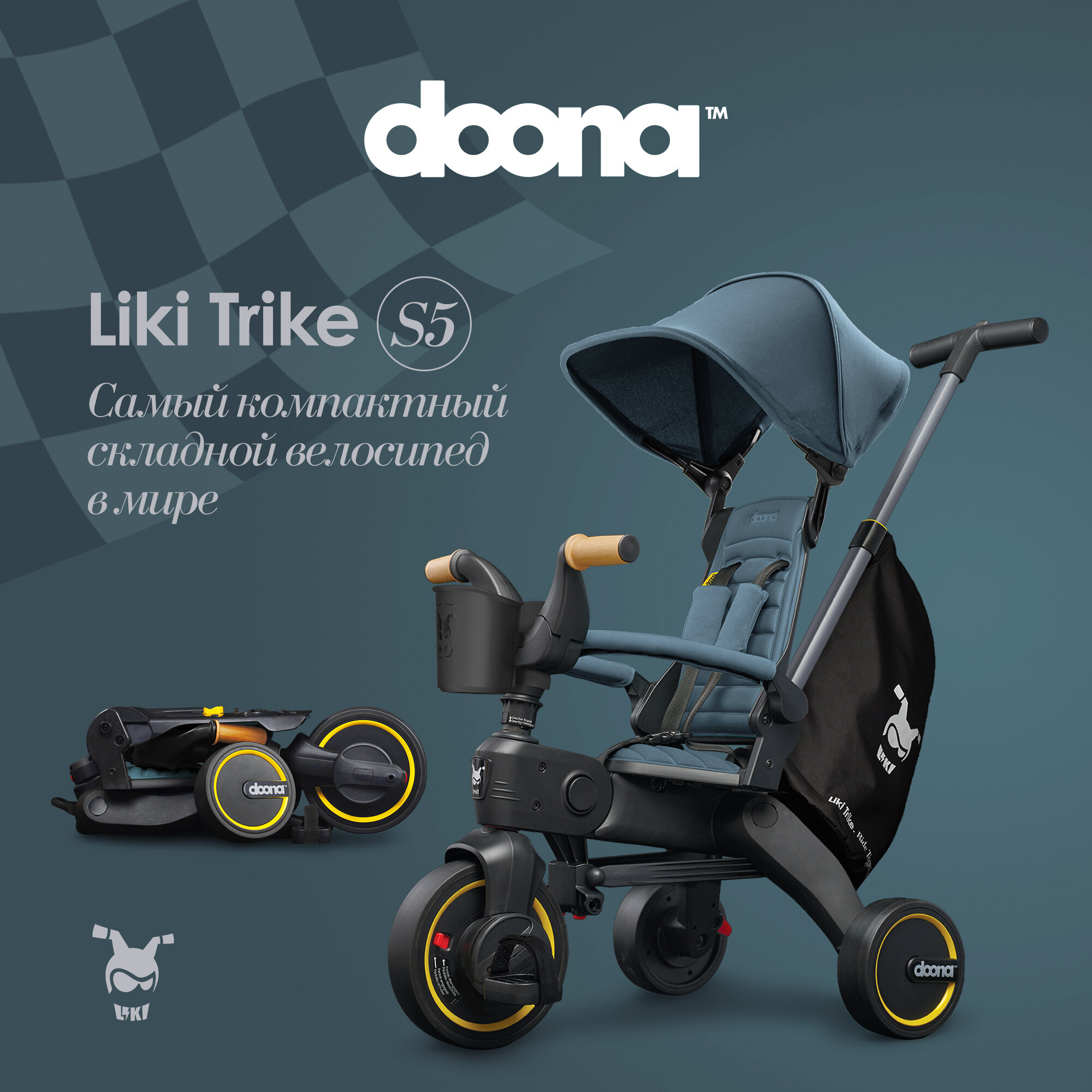 Складной трехколесный детский велосипед - коляска с родительской ручкой Doona Liki Trike S5, цвет: Ocen Blue интересное: