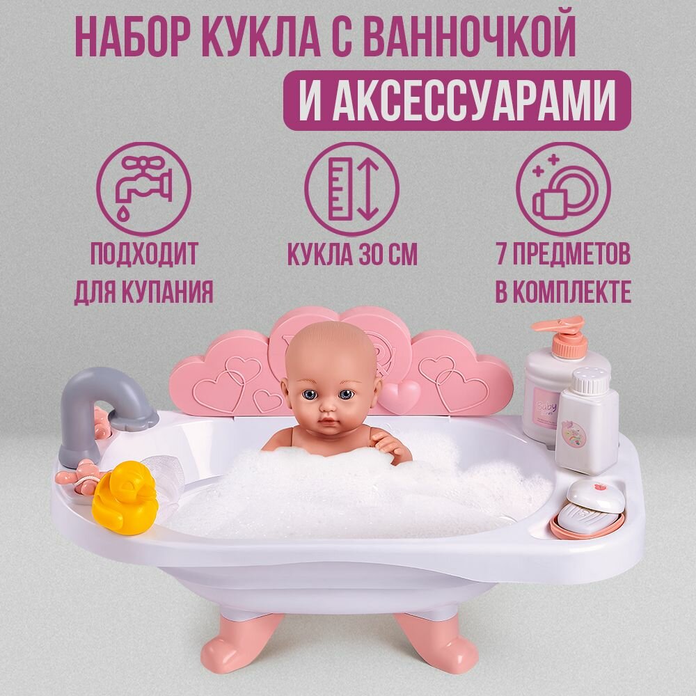 Кукла пупс с ванночкой и аксессуарами, 30 см