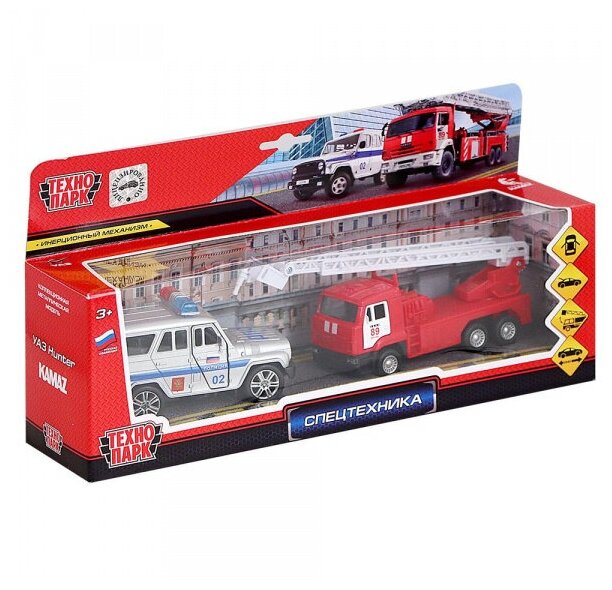 Купить Набор машинок Технопарк Спецтехника, Полиция и пожарная, инерционные SB-19-24-WB