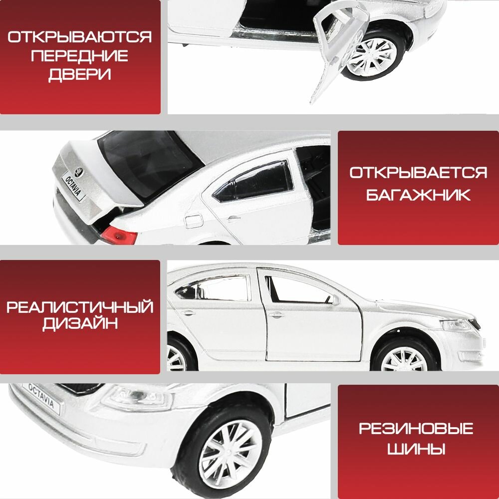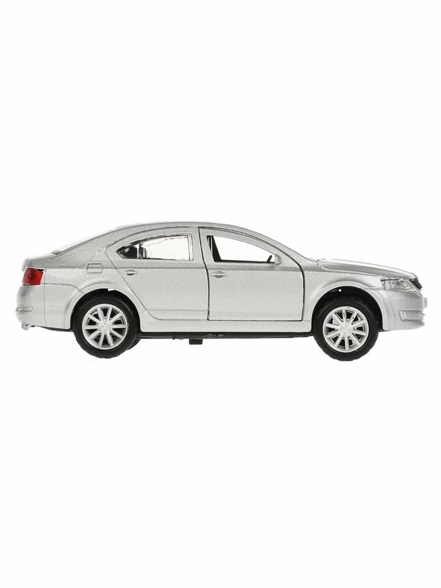 Машинка детская Skoda Octavia 12 см, Технопарк, серебристая, открываются двери и багажник, металлическая