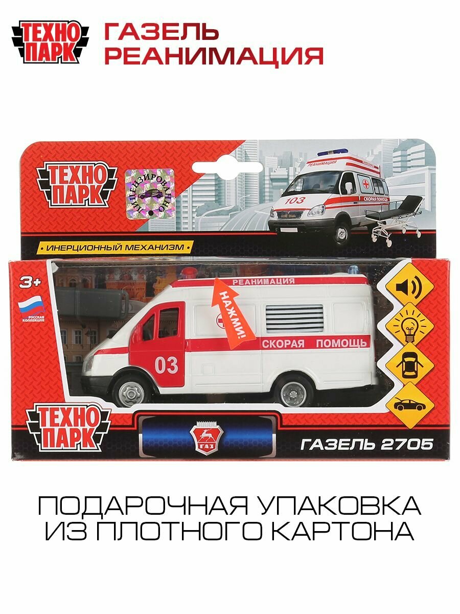Модель машины Технопарк ГАЗ 2705 Газель Реанимация, инерционная, свет, звук СТ-1276-1