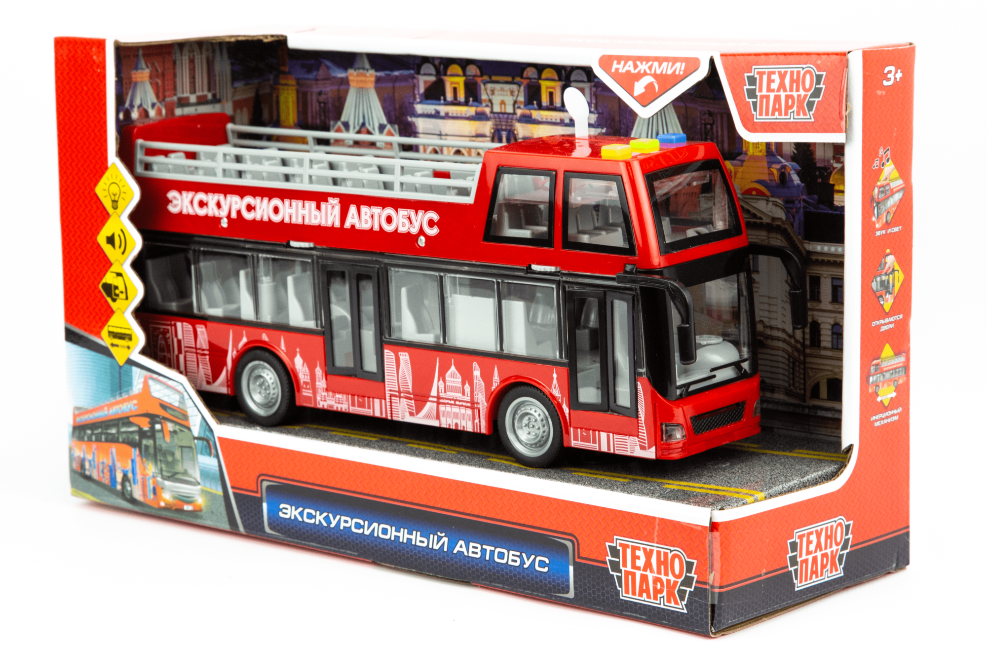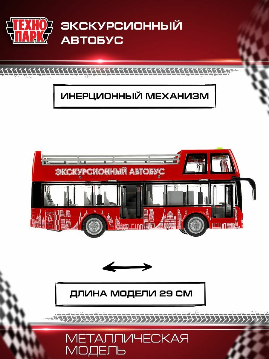 Автобус экскурсионный 29см пластик свет+звук Технопарк инерция 3 кнопки