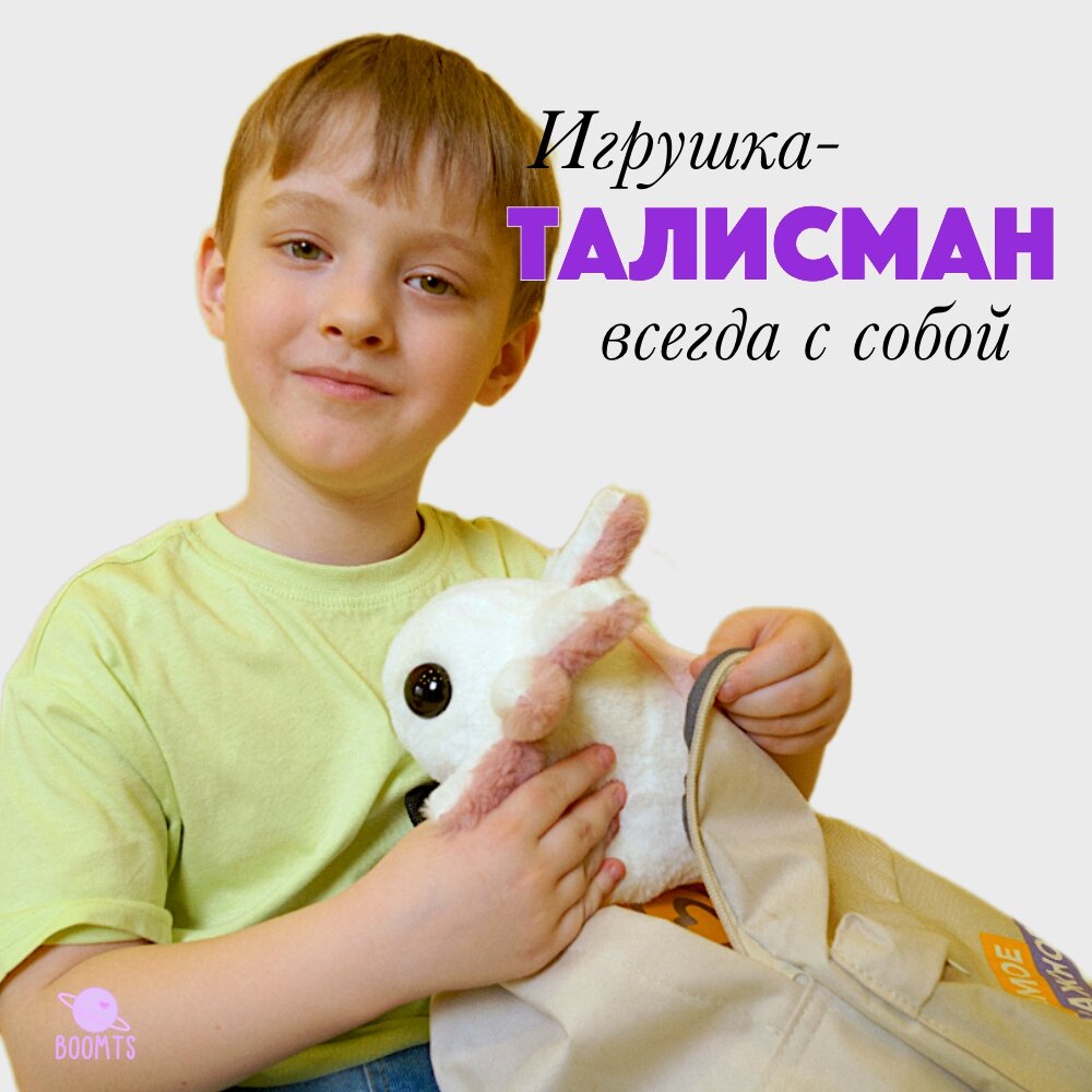 Аксолотль мягкая игрушка BOOMTS белый подарок на Новый год и день рождения ребенку интересное: