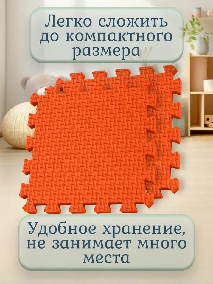 Мягкий коврик-пазл для детей "Eco Cover Плетенка", 9 частей, 95 х 95 см, оранжевый
